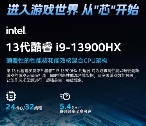 其次是七彩虹隐星P16Pro采用了i9处理器,虽然是13代酷睿,但i9-13900HX的规格摆在那,24核心32线程放在最新一代酷睿处理器中也是很能打的。这颗处理器基本处于目前移动平台的中高端水平,放在这个价位还是很香的。