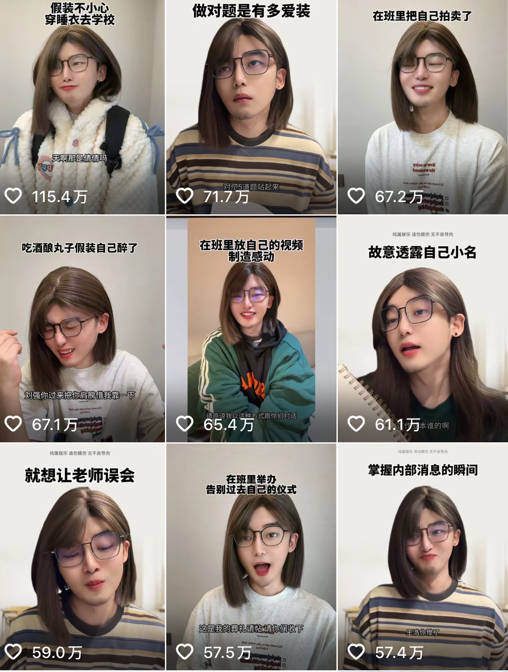 在短视频平台上,有一条专属于“校园生活”的角色扮演赛道,博主们会通过台词、互动和微表情还原曾经在学校里发生过的人和事。