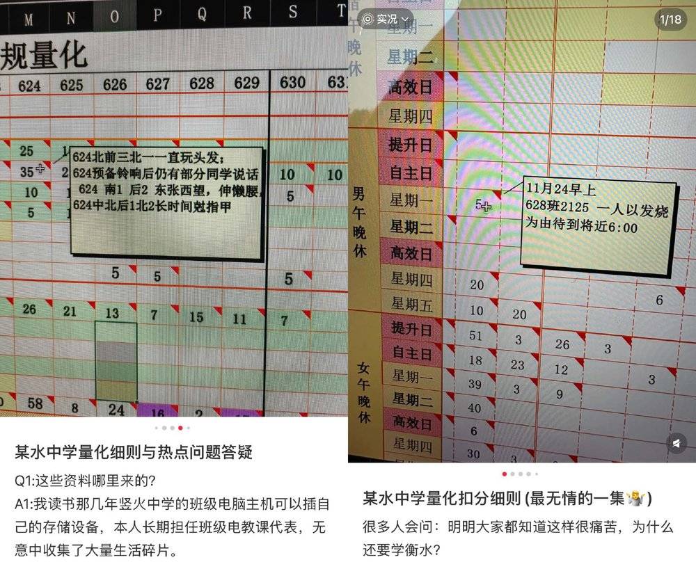小红书上有一位特殊的博主,简介是“某水中学素材库主理人”,她更新了当年在某水中学上学时的量化扣分细则。