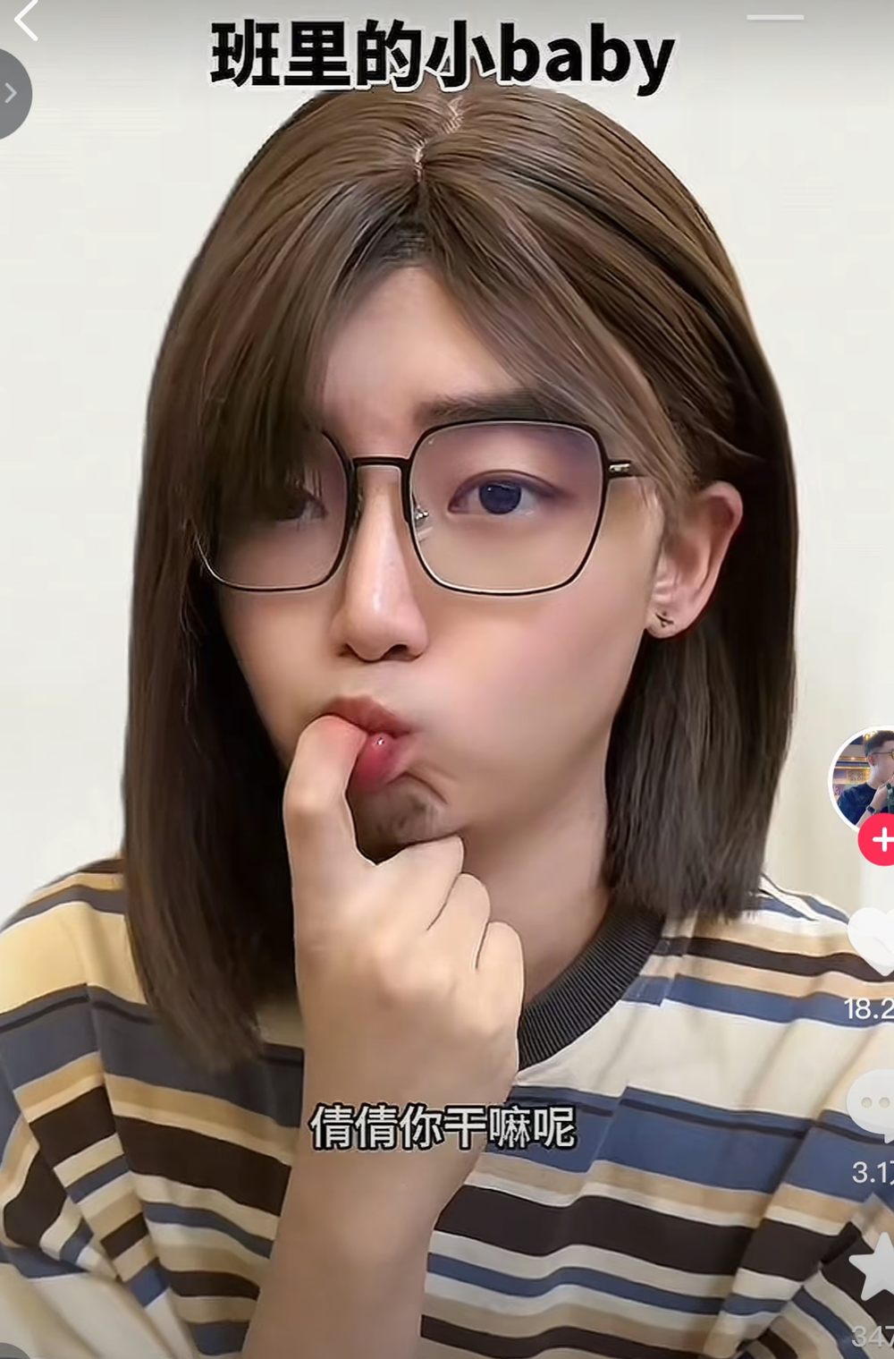 有一位男扮女装的博主@几两,专门拍摄的是“倩倩她们班的故事”,播放量高达14.6亿次。主人公“倩倩”,可以说是千千万万人的青春期限定阴影,以至于所有人都在评论区求着他断更。