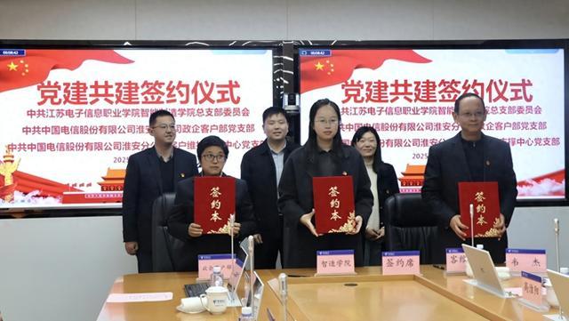 11月21日下午,江苏电子信息职业学院智能制造学院党总支赴中国电信淮安分公司开展党建共建活动。中国电信淮安分公司客户维护支撑中心党支部负责人、政企客户部党支部负责人,我校智能制造学院党总支负责人,校企双方党员职工和大学生代表40余人参加活动。