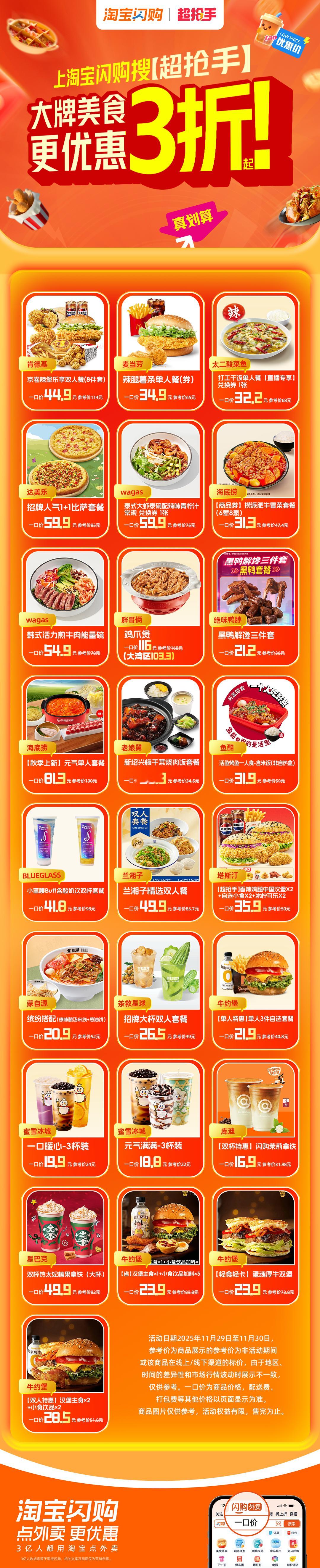 感恩节的仪式感,就藏在热腾腾的美食里!这个冬天,用实实在在的美食犒劳辛苦许久的自己,感谢那个一直努力前行的你。太二酸菜鱼打工干饭单人餐32.2元起,那份酸爽开胃的老坛酸菜,搭配滑嫩鲜美的鱼片,酸辣过瘾的汤汁浸润每一粒米饭,瞬间唤醒疲惫的味蕾,让午餐时间变得格外治愈。海底捞·下饭火锅菜捞派肥牛冒菜套餐(6荤8素)31.3元起,这价格同样令人惊喜,比其他平台都划算!六荤八素的丰富配料搭配香浓的汤底,每一口都是麻辣鲜香的极致享受,暖心又暖胃的满足感油然而生。上淘宝闪购搜【超抢手】,大牌美食3折起!同款大牌美食,淘宝闪购「超抢手」价格更优惠~这份热气腾腾的感恩美味,你会和谁一起分享呢?是那个总在你加班时贴心陪伴的同事,还是那个总在你疲惫时给你鼓励的伙伴?淘宝闪购超抢手超抢手给你冬日仪式感超抢手好价美食陪吴艳妮重新启杭 淘宝闪购超级周末