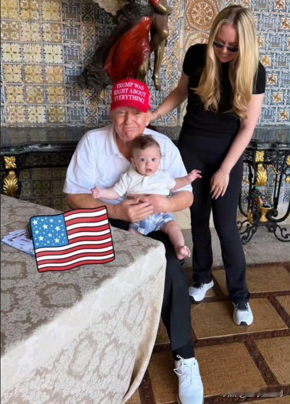 【黄金时代】川普今天在海湖庄园过感恩节,抱着一个小BABY,一起玩手机。 美国