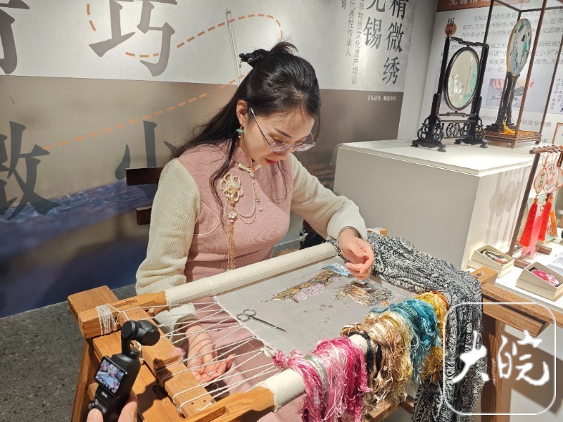 在无锡精微绣展厅,非遗传承人陈燕妮向记者介绍,一根蚕丝竟能劈成多达128根细丝,引得众人惊叹不已。而在留青竹刻展厅,乔瑜轻抚竹板上仅0.03毫米的微凸纹路——那是她与徒弟们千刀万刃雕琢出的江南意境。“竹刻臂搁源自文房雅玩,我们正是通过这样的技艺,延续着江南文脉的风雅传统。”乔瑜对大皖新闻记者说道,从设计到选材,再到雕刻成器,一件出色的竹刻作品往往耗时一月有余。如今,这些曾静守书斋的雅物走出深闺,在展台前无声讲述着江南的细腻与坚持。