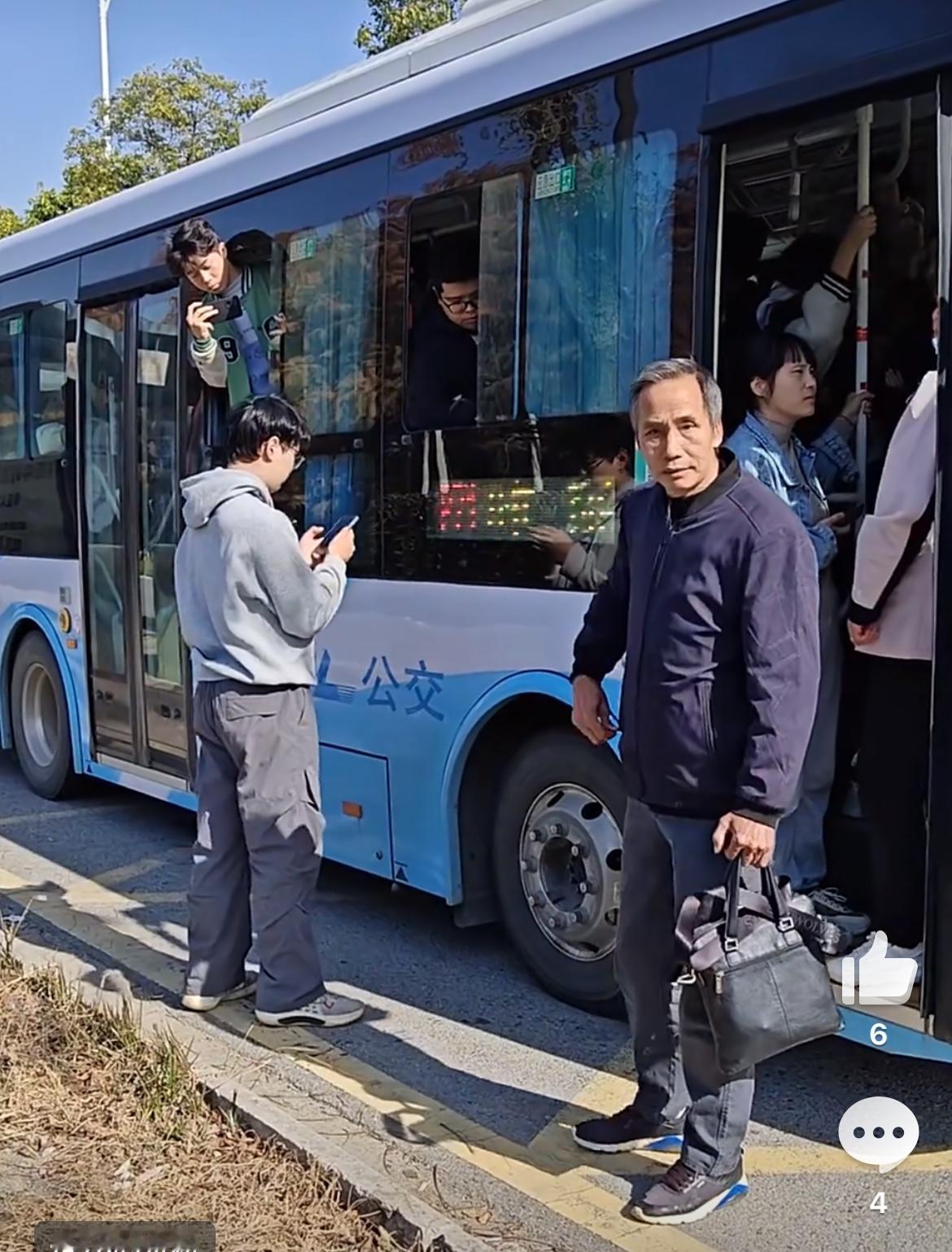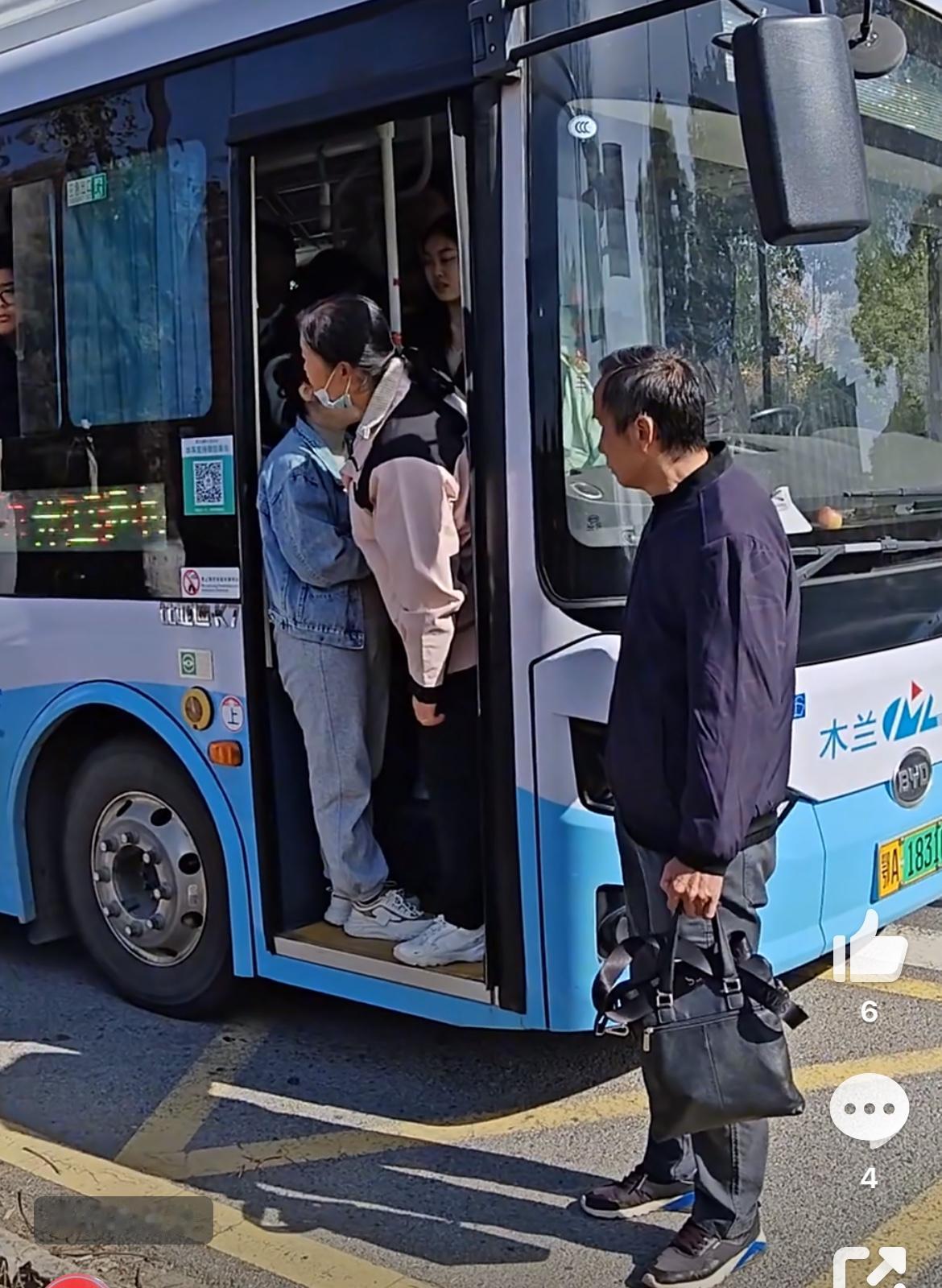 武汉一公交超载了,公交不上客,这个老登直接拦在车前不让公交走,想要强行上车,司机