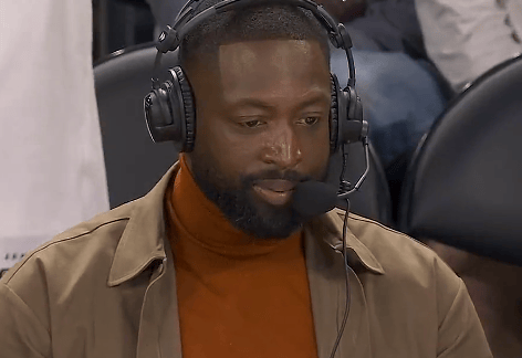 韦德现场解说湖人对阵独行侠,詹姆斯和韦德握手致意