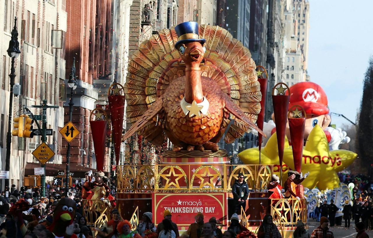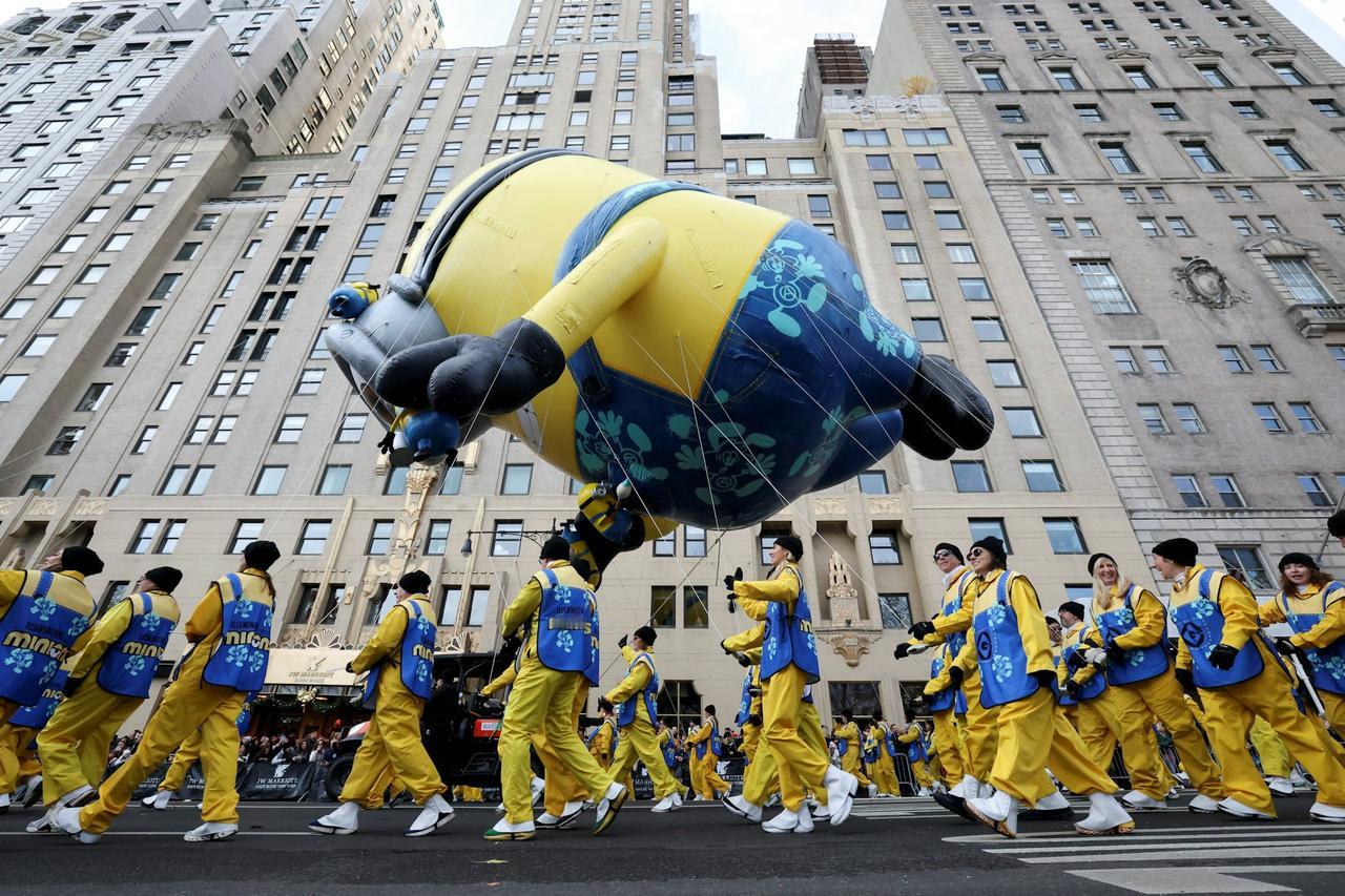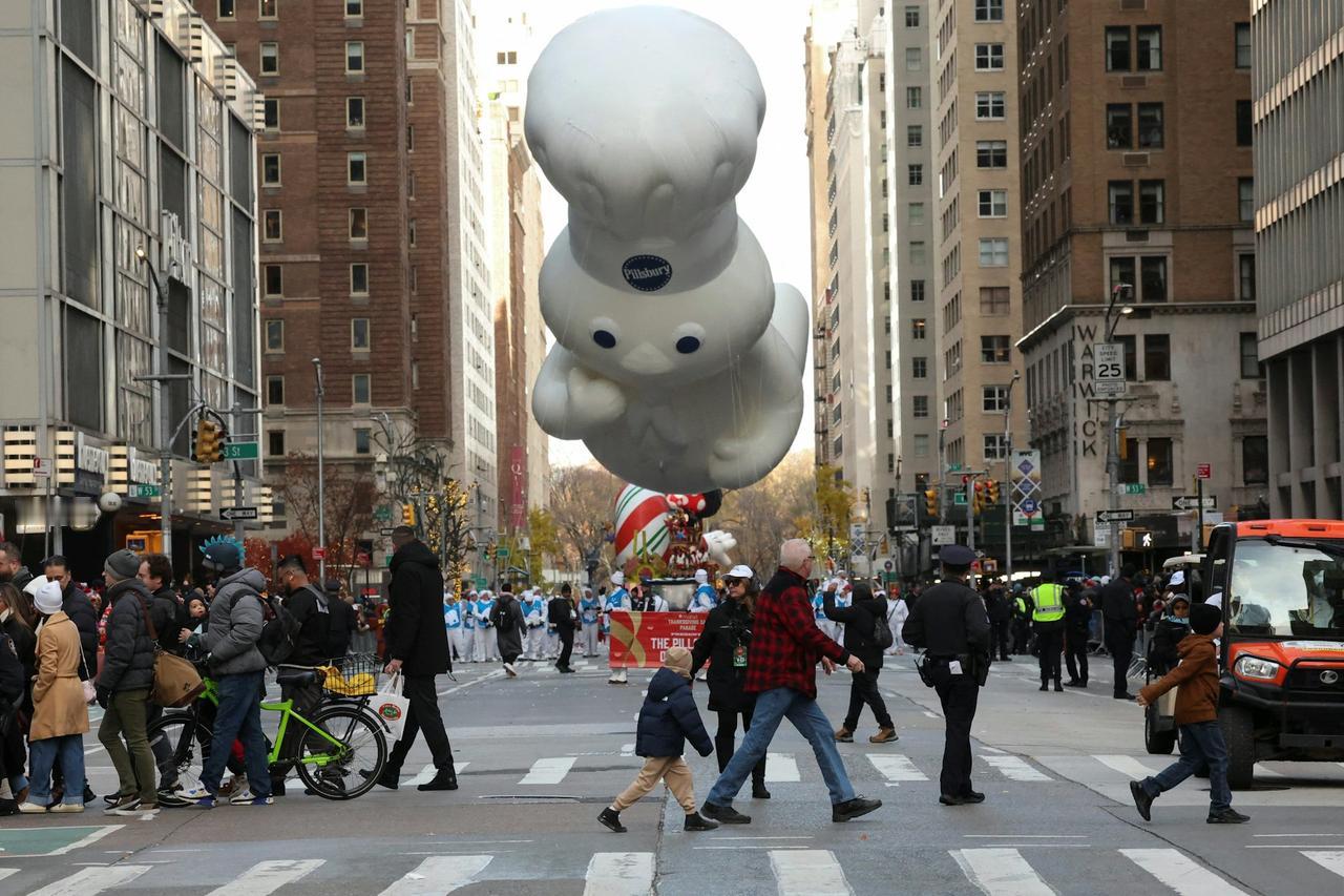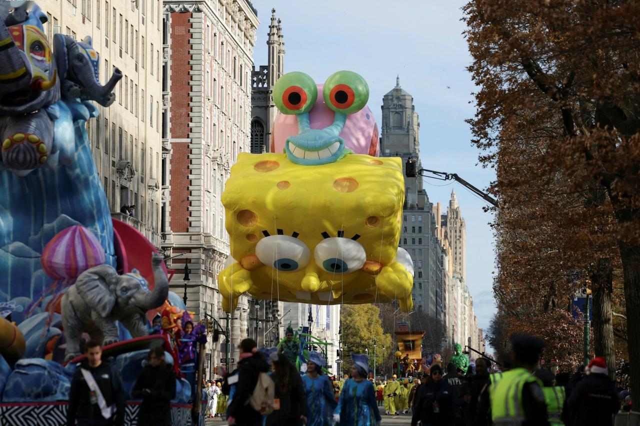 作为美国最具代表性的节日庆典之一,纽约梅西感恩节大游行今年迎来了第 99 届盛会 ——11 月 27 日(周四),这场标志性活动在曼哈顿如期上演,正式拉开了感恩节与整个假日季的序幕。 当天虽然阵风一度达到 35 英里 / 小时,风速不算小,但备受期待的巨型气球依然顺利登场,整场游行全程平稳推进,没有出现任何重大安全事故。为了应对全国范围内的安全关切,纽约市警方也提前部署了数千名警力,同时强化了反恐监控措施,全力保障活动安全。 34个大型气球、4个迷你气球。其中新增6个,28辆花车、11支行进乐队、33个小丑团队、4个特别表演单元。新增花车包括史瑞克洋葱马车和KPop主题。Labubu首次亮相纽约感恩节游行,作为16英尺高的毛绒雕塑出现在“Pop City”花车上。 据统计,今年的游行吸引了约 350 万人来到现场观看,而通过电视和网络同步关注的观众更是超过了 5000 万,热度依旧不减。