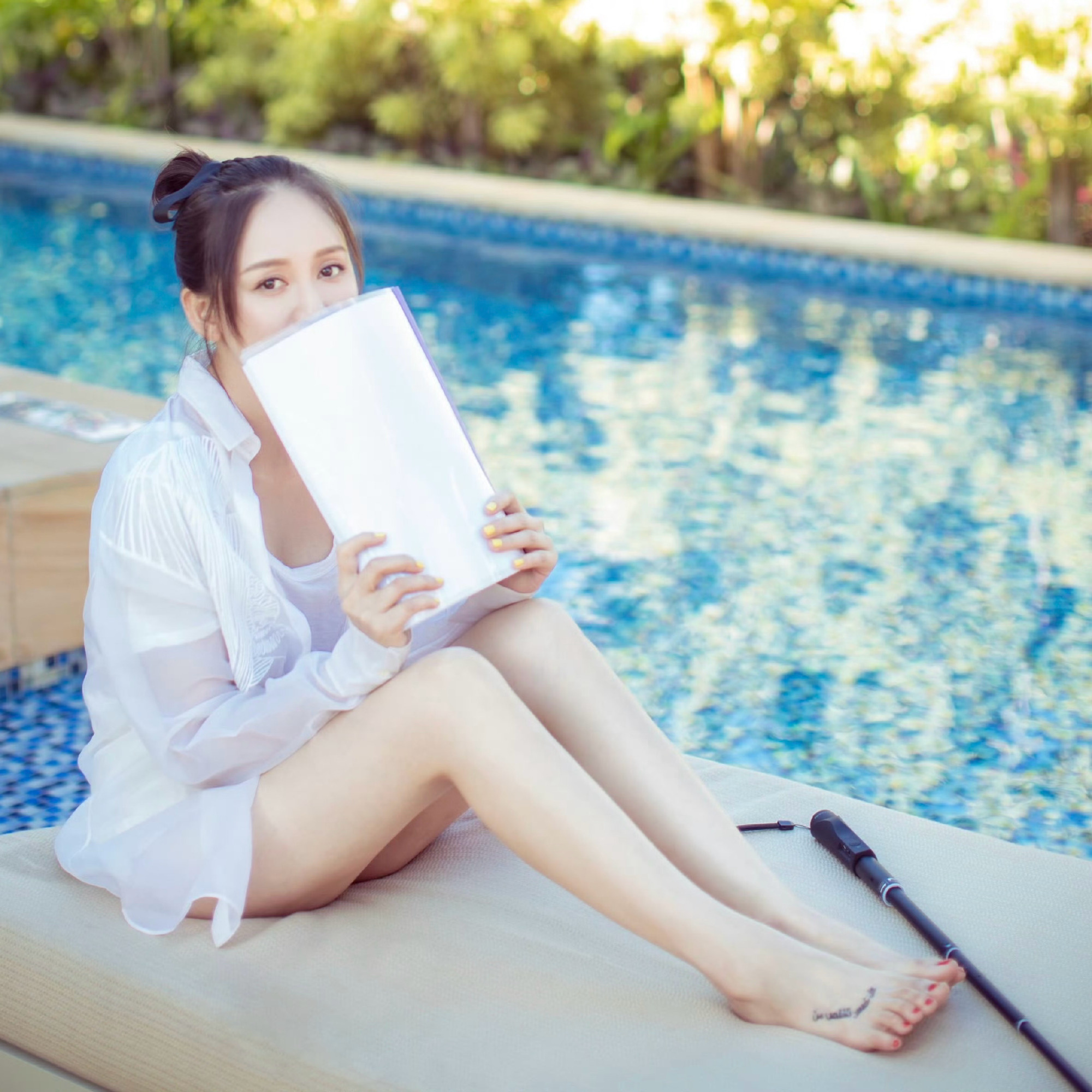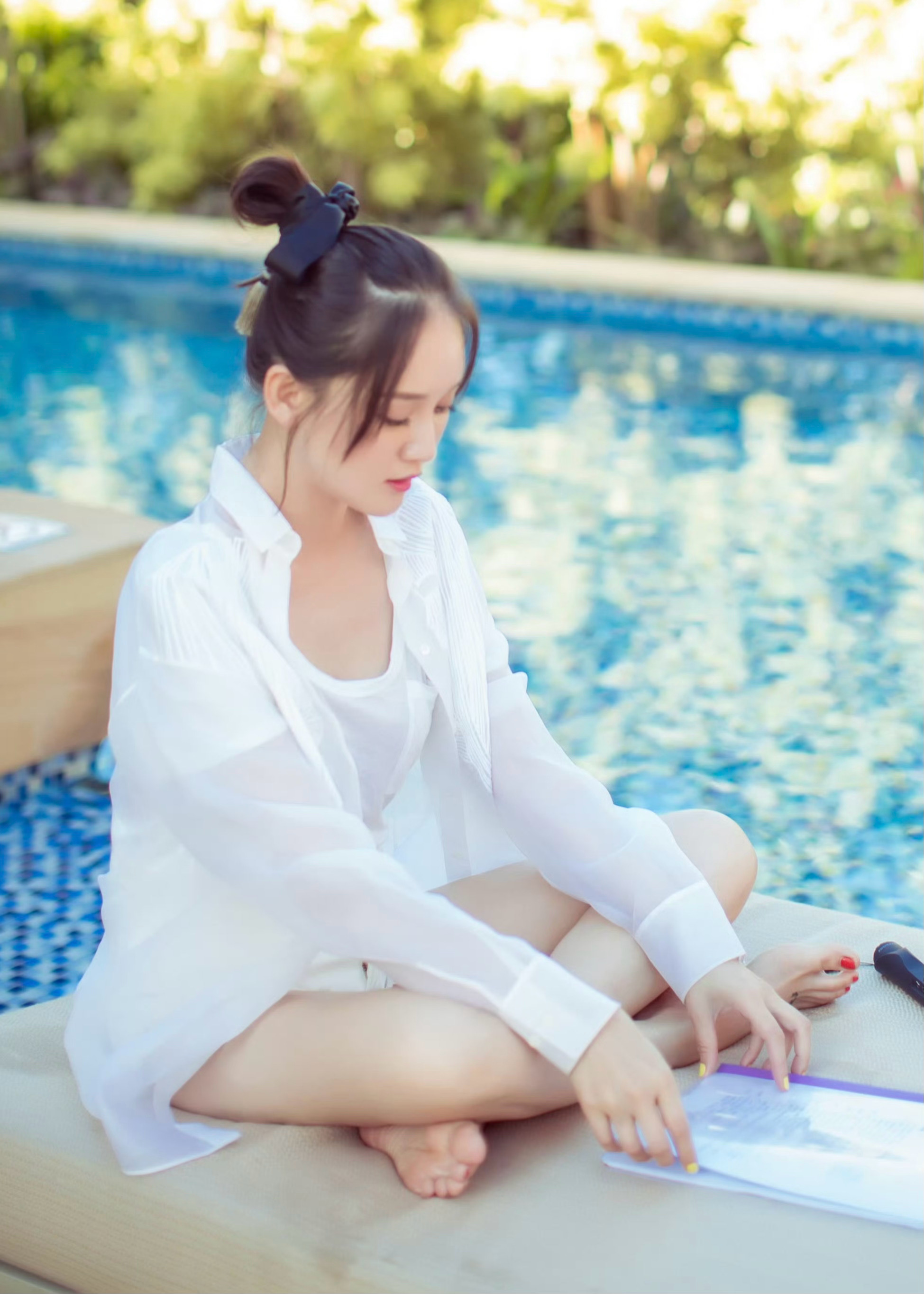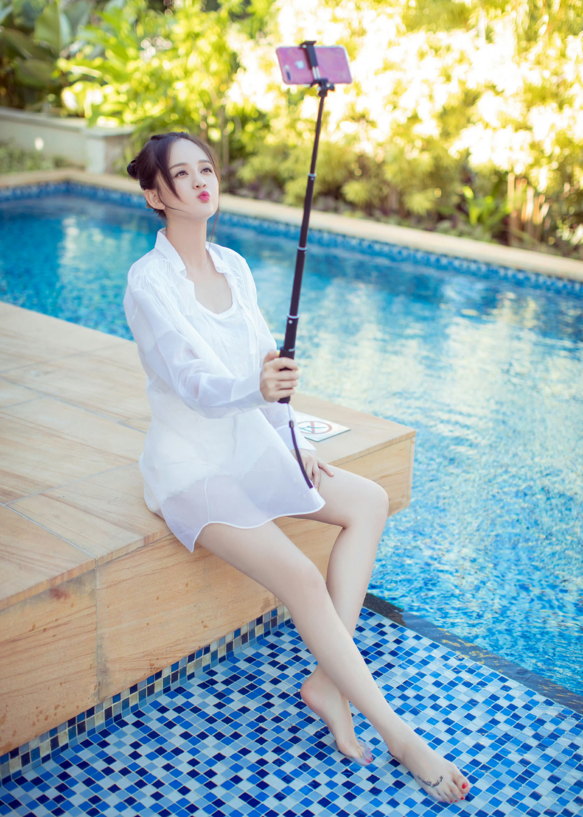 陈乔恩泳池自拍,白衬衣美腿,甜美且温柔