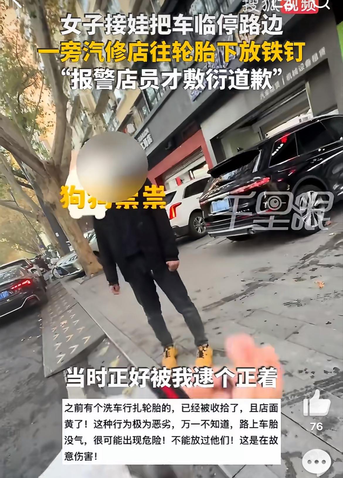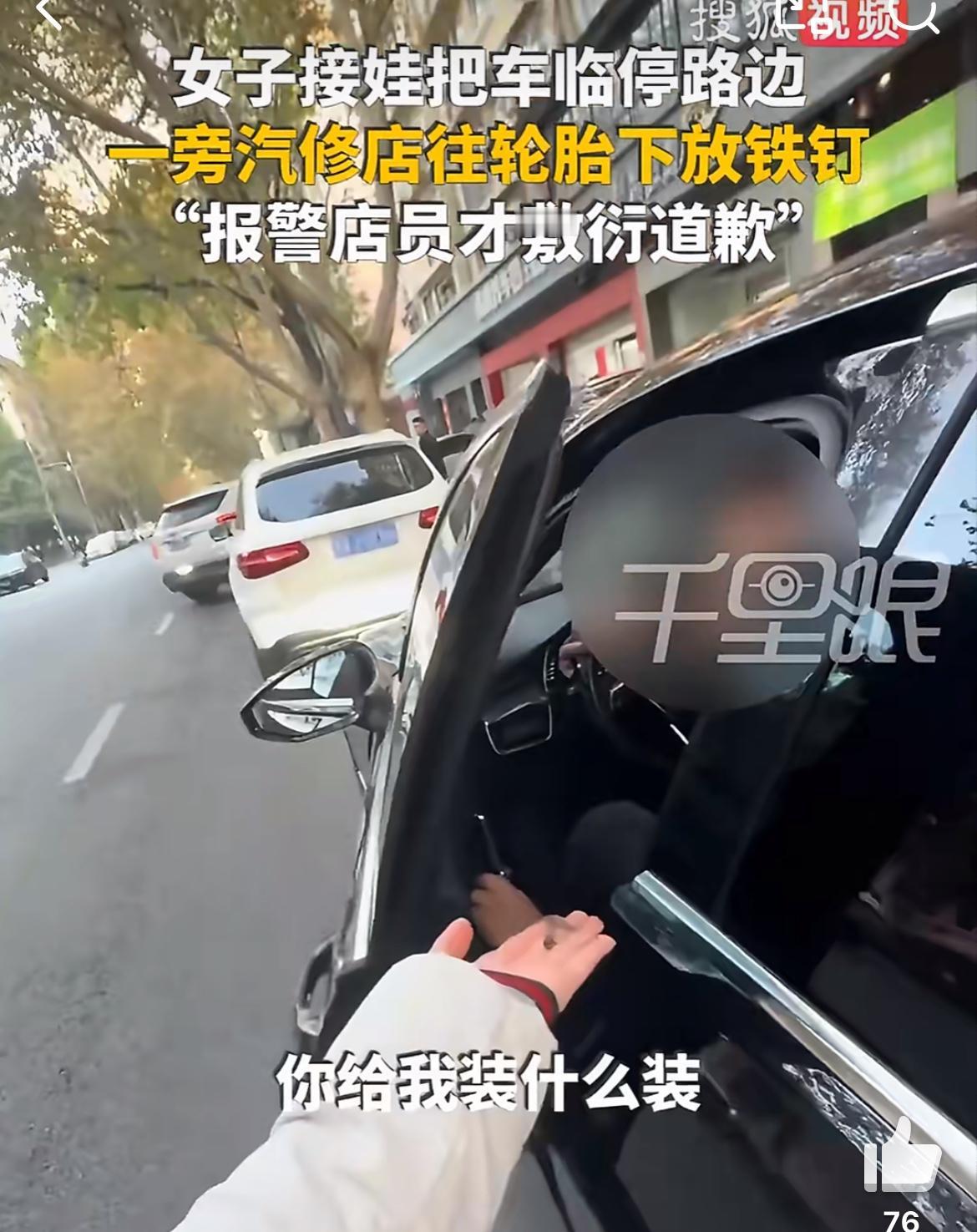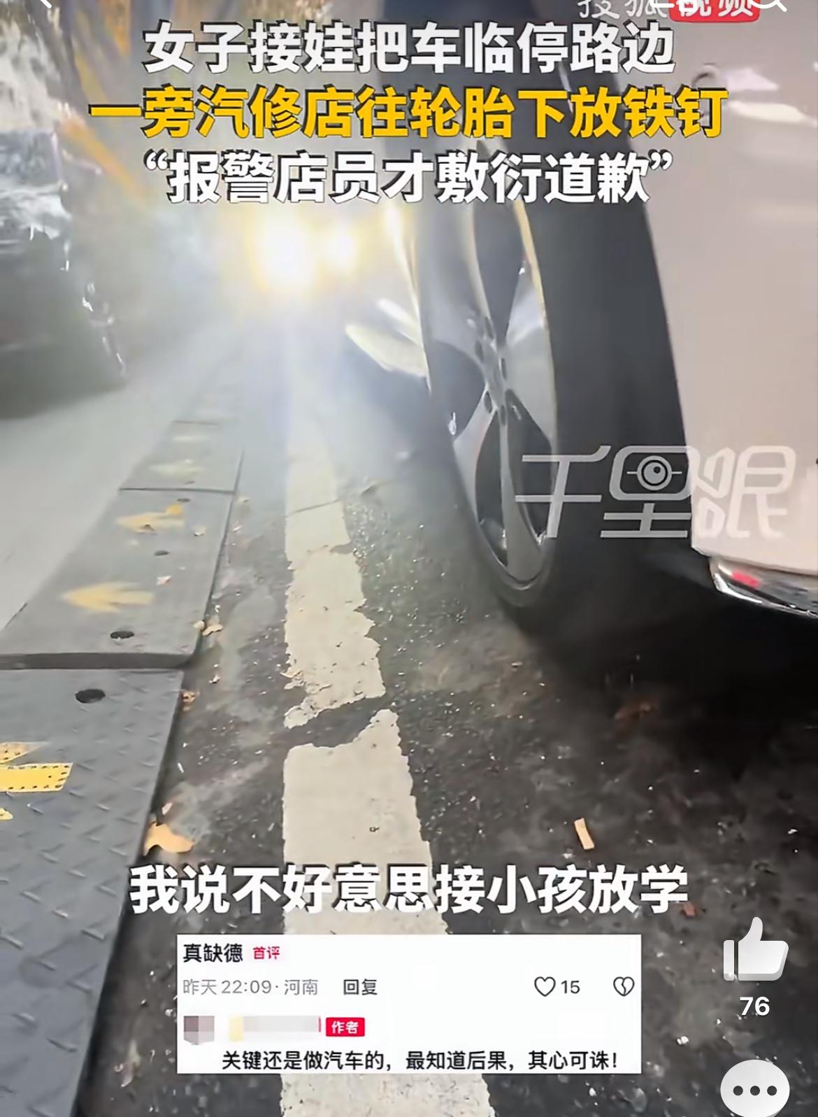 武汉女子把车停在一汽修店门口,轮胎底下被放钉子,这个新闻被引导到汽修店动机不纯,想讹诈这车主,其实不是。女滴接孩子放学,找不到停车位,恰好发现汽修店门口有个空,以为运气好,就停进去了,可是却没发现这是人家的进车口,挡住人家做生意了。并且人家汽修店还打电话给她挪车了,显然她没有按照规定时间赶过来,汽修店才这样干的,虽然有点不地道。汽车轮胎被扎 轮胎钉子 砸车女子
