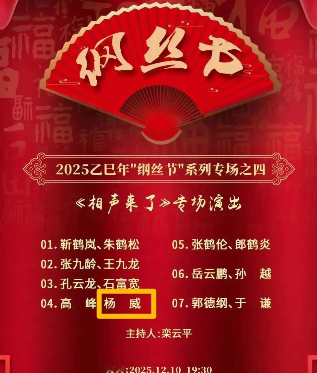 发现了一个有意思的事,德云社发了近期纲丝节相声的演员表。杨议的大哥杨威在列,他与高峰搭档;还有石富宽也来了,他与孔云龙搭档。石富宽作为于谦的师父,此次到来也备受关注。 看到这个名单的时候,我第一反应是纲丝节今年这阵容是藏了多少惊喜?石富宽老师上次跟德云社年轻演员同台,好像得追溯到好几年前,这次挑孔云龙,是不是看中他那股“摔打出来”的稳劲儿?毕竟孔云龙从之前的“事故体质”到现在台风越来越扎实,能跟石老师这样的前辈合作,绝对是一次质的提升机会。 再说杨威老师,天津相声圈的老炮儿,尹笑声先生的徒弟,基本功瓷实得没话说。他在天津捧哏的名气可不是虚的,好多老观众就认他的活儿。而且他跟高峰早年间就合作过,这次再搭伙,一个是天津味儿的接地气捧哏,一个是德云社总教习级别的文哏担当,这组合想想就有戏——高峰的规矩遇上杨威的灵活,会不会把传统段子说出新感觉? 有人可能会问,杨威来德云社跟之前的阳光相声社有关系吗?原文特意说了没关系,这点挺重要,说明人家是纯粹来交流表演的。而且他不少徒弟都在德云社上班,本身就有联系,来站台也合情合理。我倒觉得这是好事,北京天津相声圈就该多走动,好演员碰撞才能让相声更有活力。 这次纲丝节的名单藏着德云社的小心思:既请前辈镇场子,又给年轻演员铺路。石富宽的捧哏是教科书级别的,孔云龙能学到一星半点都赚了;杨威的口碑人品摆在那儿,跟高峰搭档绝对是质量保证。我最期待的是他们的段子选择——是传统活翻新,还是新创作?这点真抓心。 纲丝节每年最吸引人的就是这种“意想不到”的组合。今年这两对,一个前辈带后辈,一个老友重聚,绝对是亮点。你们更期待哪一对?觉得他们会说什么段子?评论区聊聊呗。