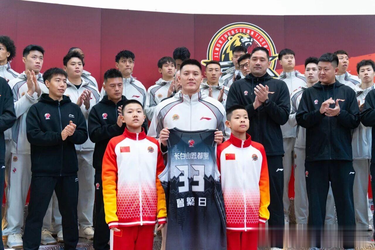 在新球衣授予环节,吉林东北虎小虎队的队员们为曾繁日、赵率舟、刘雁宇、段立谦、杨腾飞、王化东、马聪以及外援摩尔、威尔逊、阿普森等新成员呈递上了东北虎战袍。