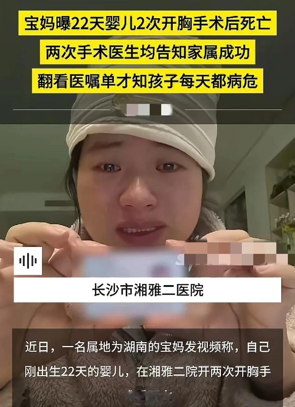 22天的宝宝两次开胸后离世, 医生嘴里的“手术成功”, 竟和医嘱单上的“每日病危”完全相悖!这不是医疗意外的惋惜,而是对家属知情权的公然漠视。 新生儿开胸本就是高风险手术,22天的宝宝连身体都没发育完全,连续两次手术的创伤可想而知。 可医生一边瞒着家长真实病情,一边持续抢救,直到孩子离世才让家属发现真相,甚至不让看最后一眼。 法律早明确了医疗告知义务,这种刻意隐瞒不是“善意谎言”,而是剥夺了家长共同决策的权利,更寒了无数患者的心。 接连发生类似事件,调查结果不能再拖延。医疗的底线是坦诚,再复杂的病情也该如实沟通,再高的风险也该提前说清。 你觉得医疗沟通中,什么才是最该守住的原则?来评论区聊聊~