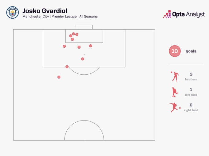 据统计,自2023年8月加盟曼城以来,格瓦迪奥尔已经打入10个进球,同期英超后卫球员中他是进球最多的。