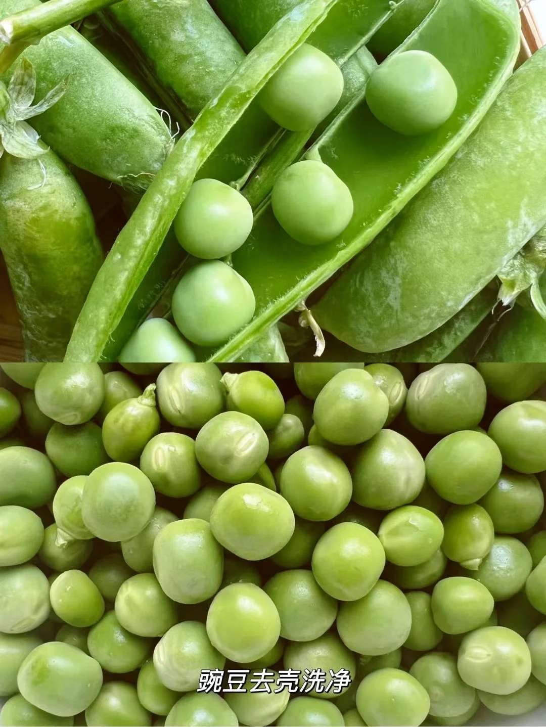 5️⃣煮饭期间,另起一锅煮开水,加一点点盐和一点食用油,下豌豆煮1-2分钟断生,过冰水,沥干备用
