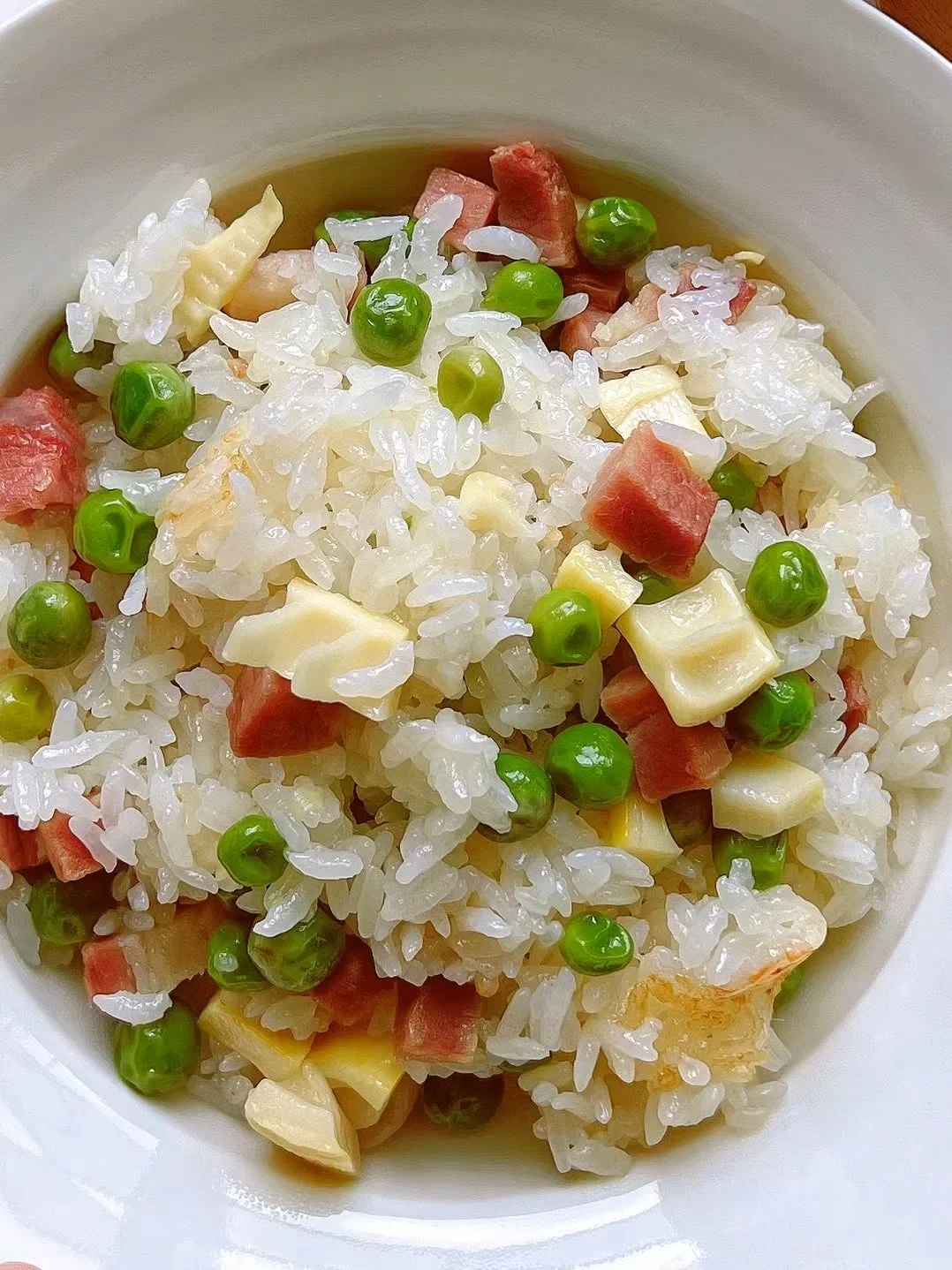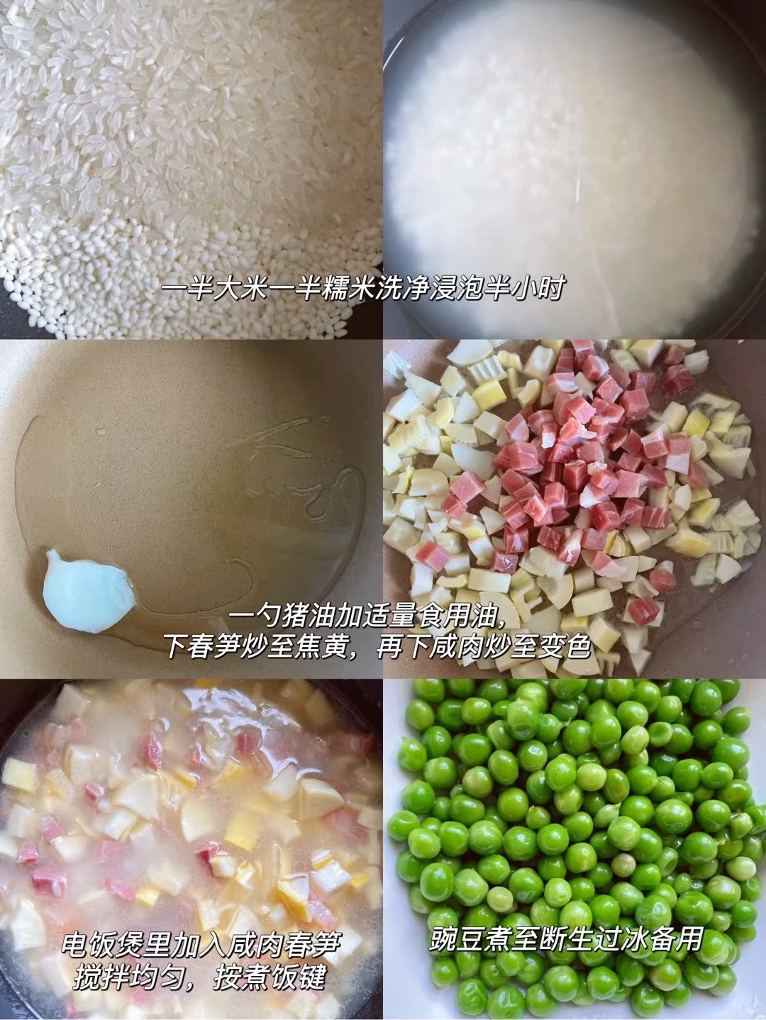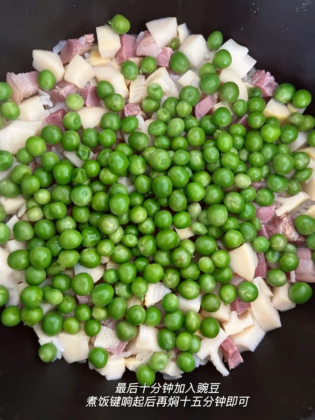 焖出一锅香喷喷的咸肉春笋豌豆饭