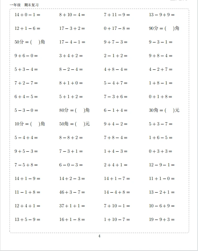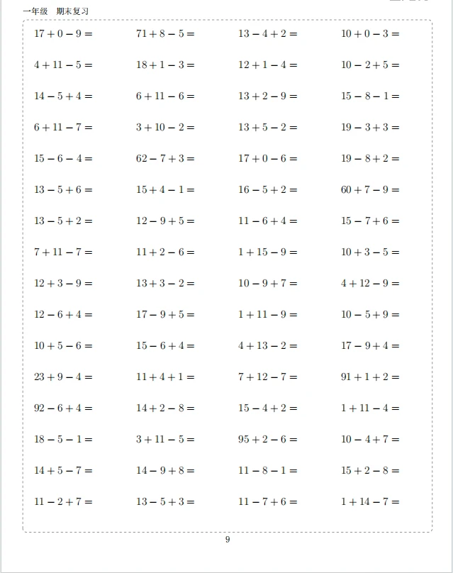 一年级 小学计算题 小学数学 计算 打卡一下 计算