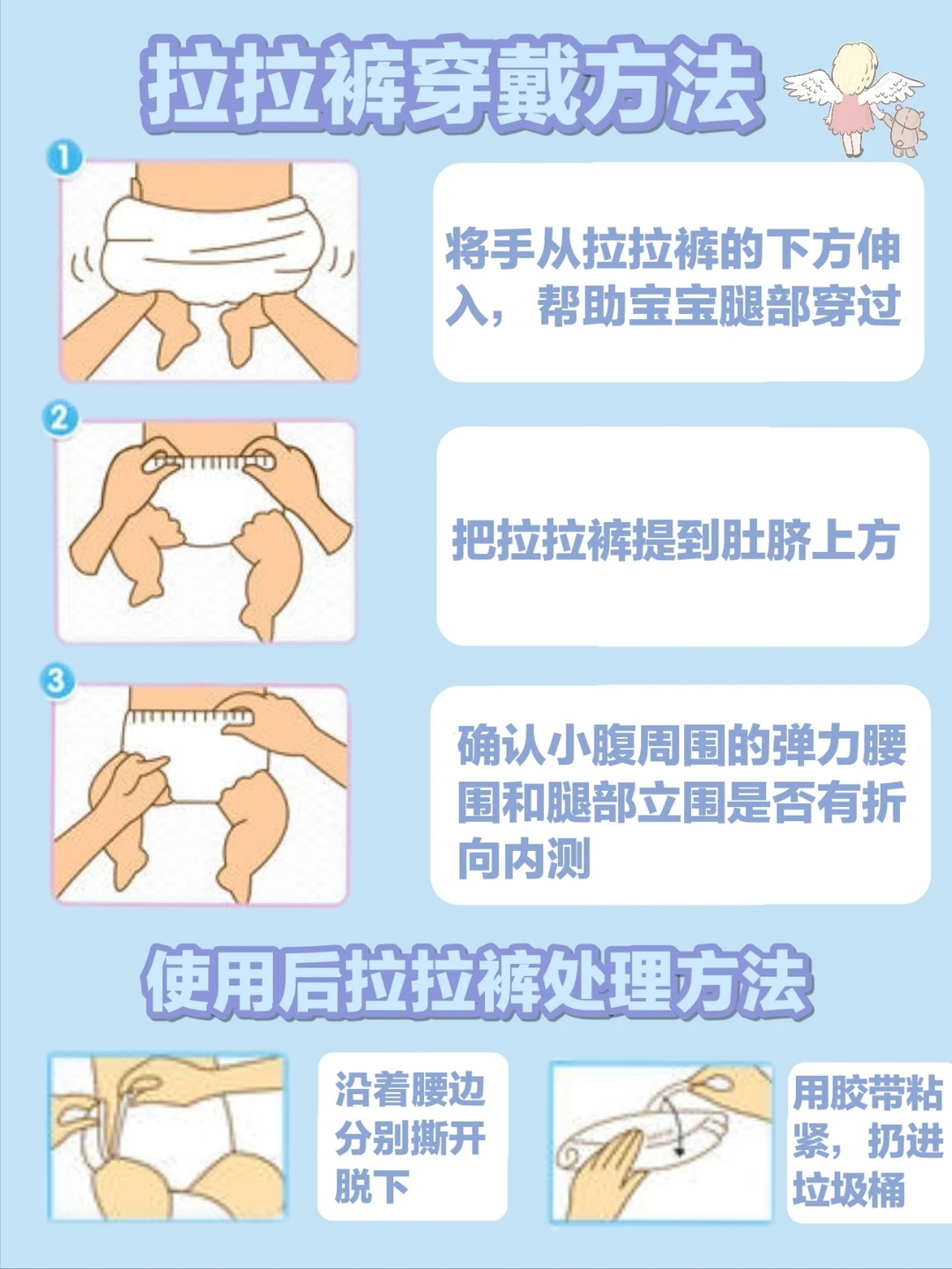 等宝宝稍大点后,宝宝好动,纸尿裤穿脱就比较心累。拉拉裤穿脱更方便,站着也能换。牢固不担心宝宝自己扯开它
