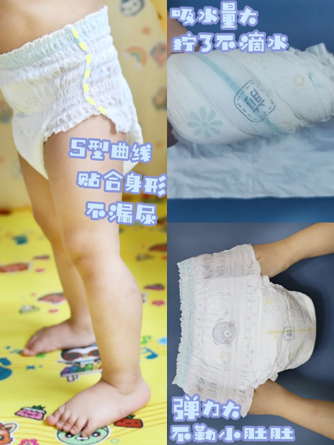由于拉拉裤更贴身,所以拉拉裤更侧重考虑👇柔软亲肤,腰围腿围弹力大,吸收快,干爽透气