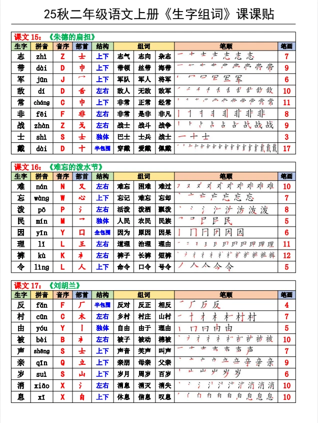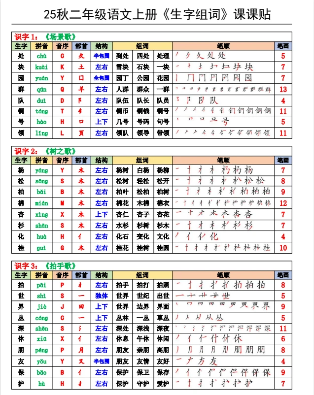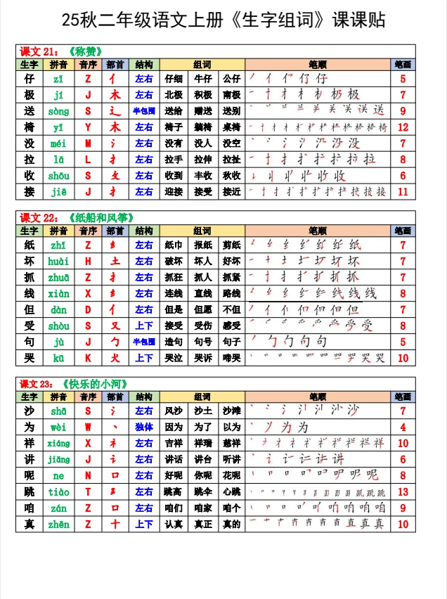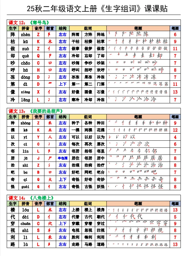 二年级语文课课贴