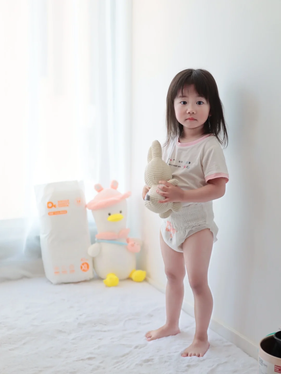 拉拉裤摸起来就很柔软很轻薄,透气孔也很多,不会闷出红屁屁,宝宝夏天穿着太舒服了[派对R]而且Cyndi现在这个年纪好动,不论她摸爬滚打,都没漏尿,而且吸尿量也不错,1⃣️整晚都不用换,孩子和我都能睡个好觉😴