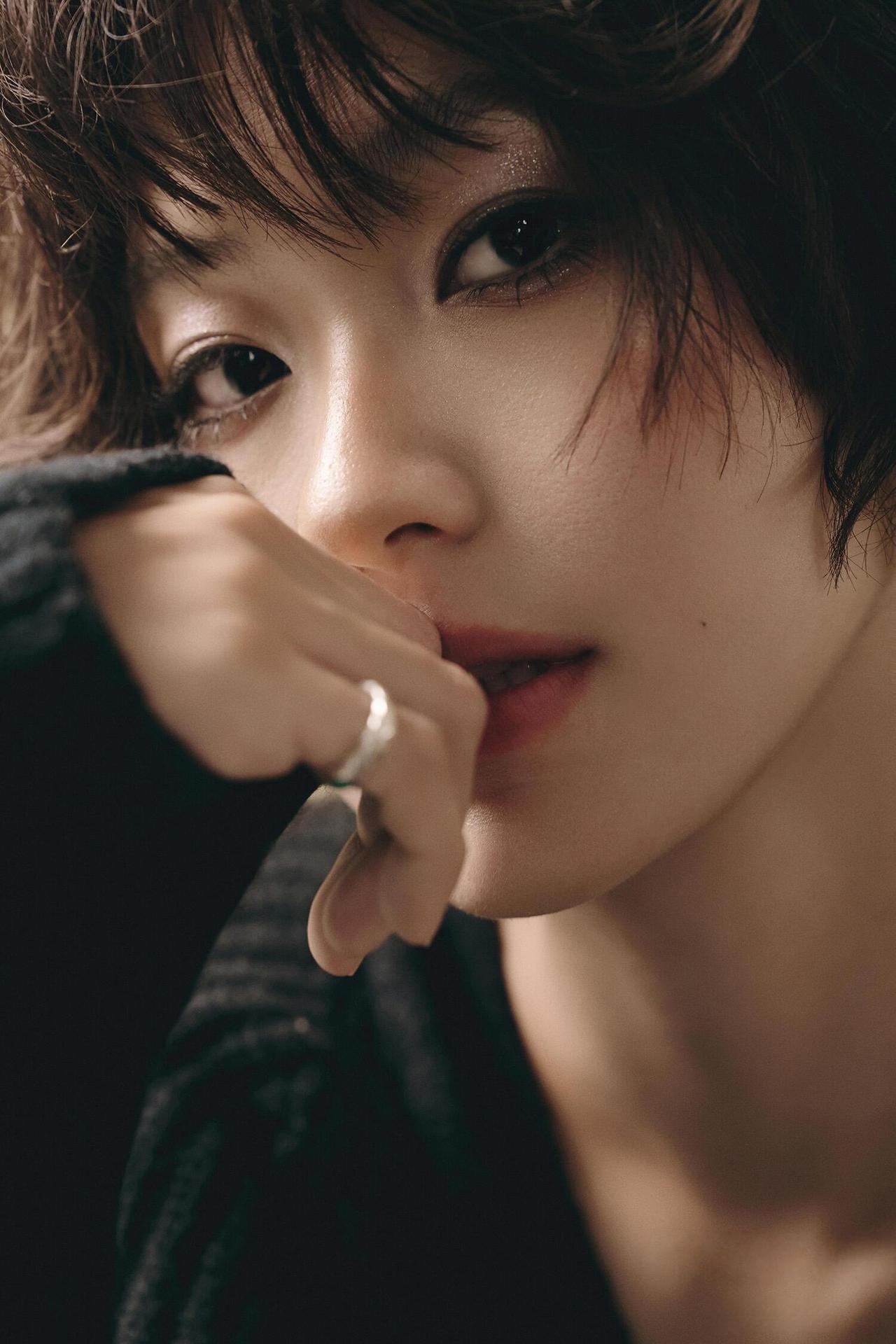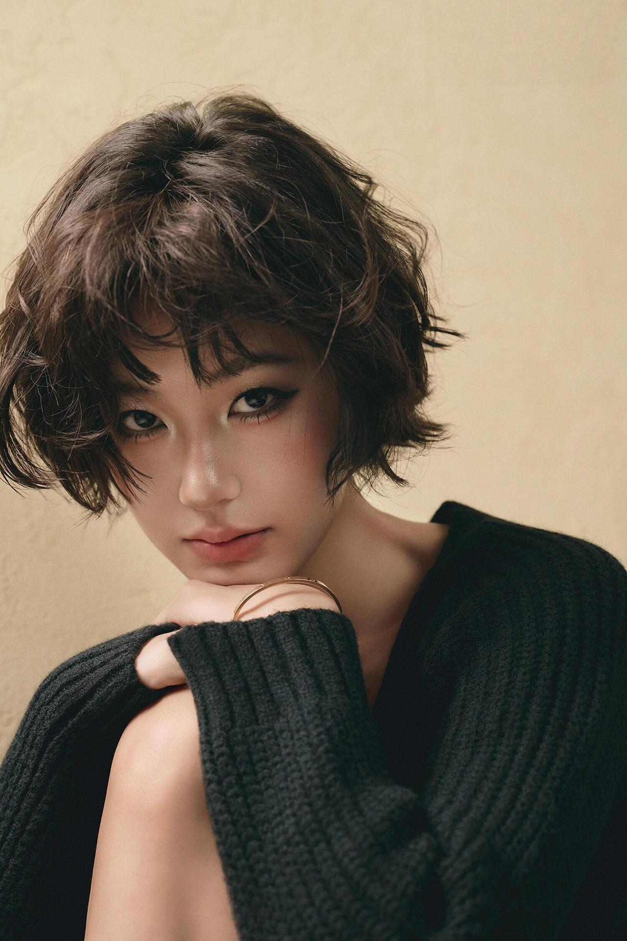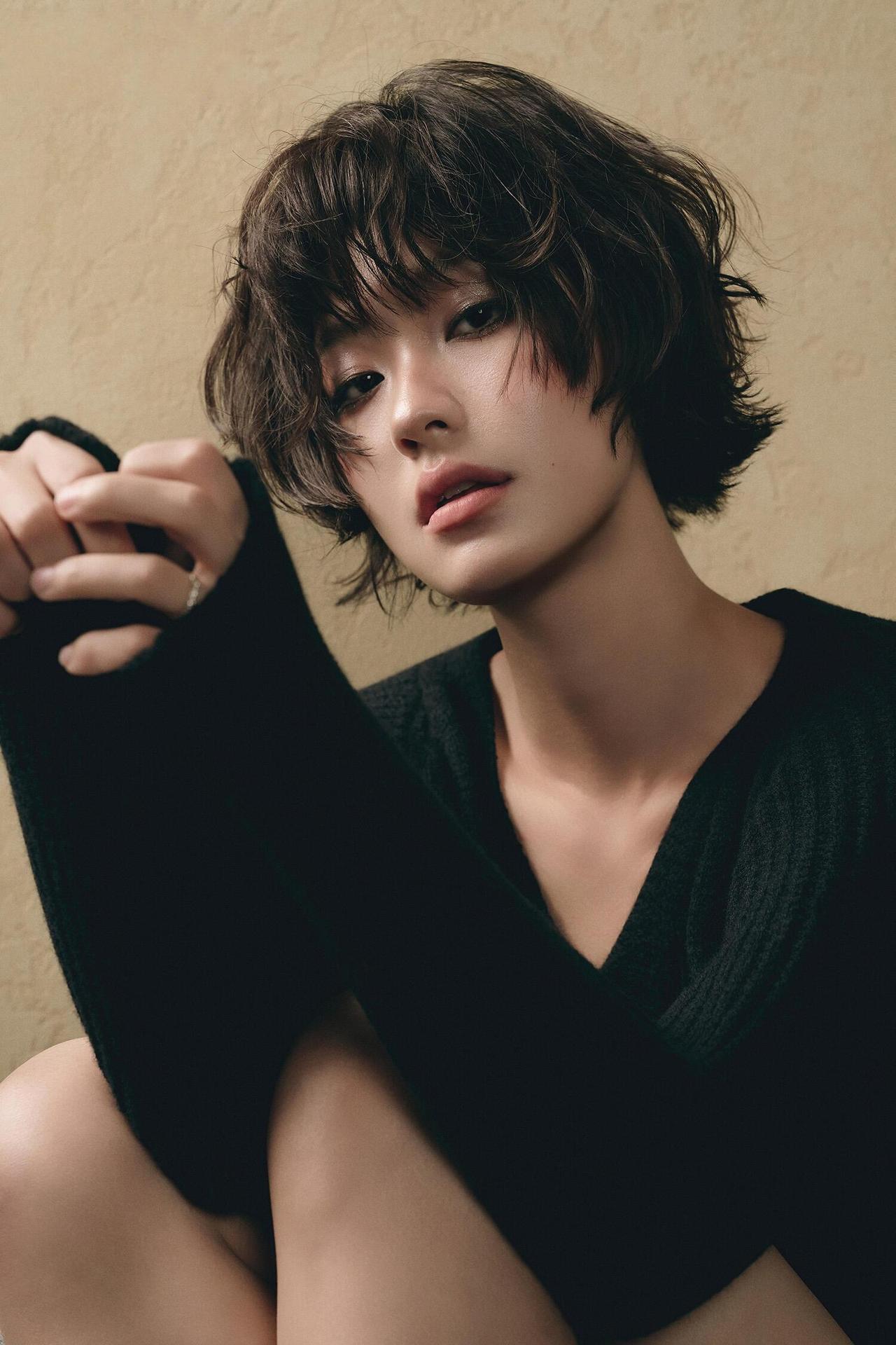 当V领针织衫的哑光质地与皮肤的柔光质感形成对比,这张特写作品的妙处,在于用材质语