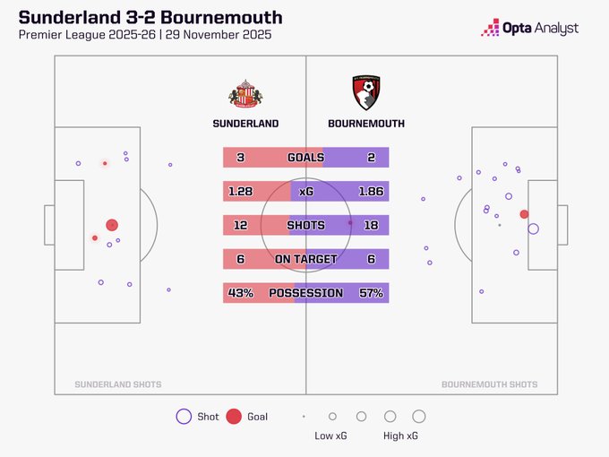 虎扑11月29日讯本轮英超,桑德兰主场3-2逆转伯恩茅斯。