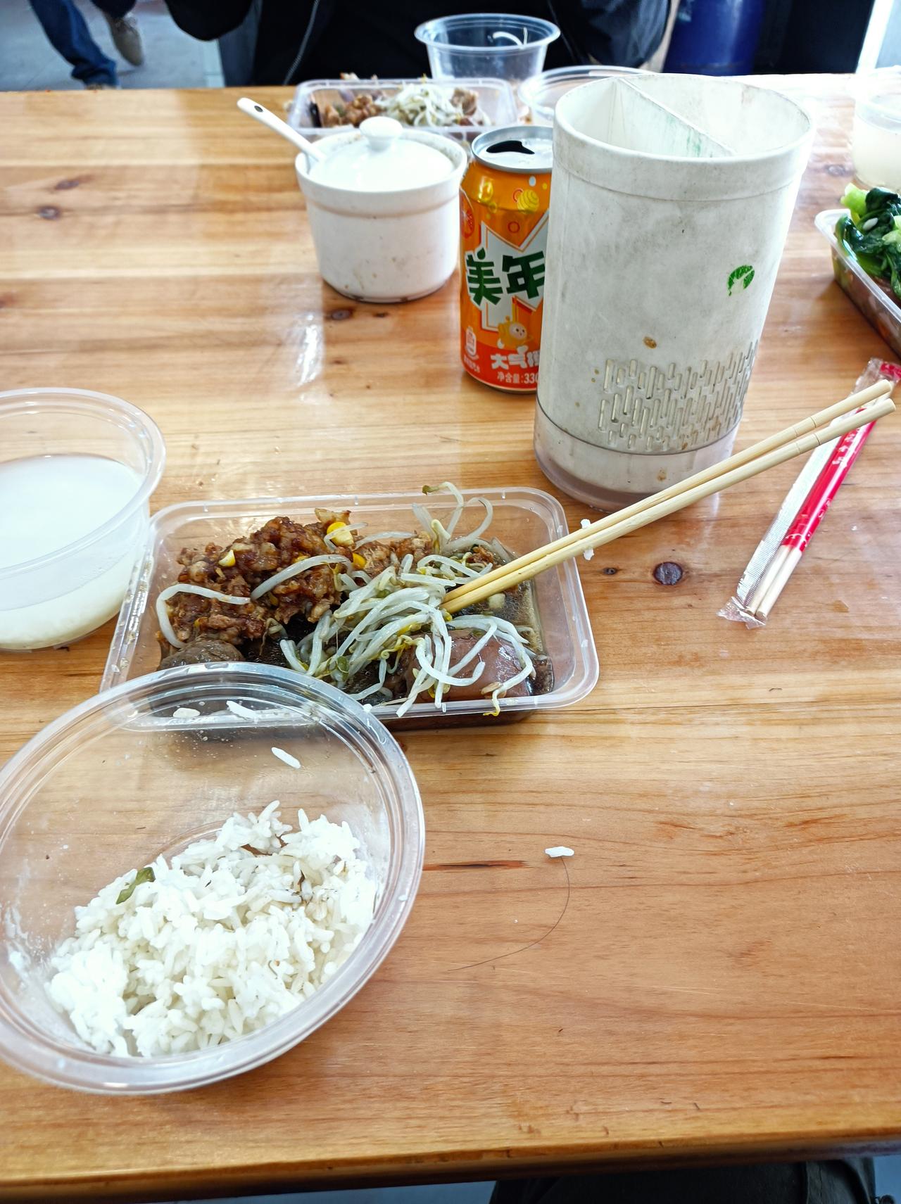工地用的着租门面?塑料凳子简易桌子棚子三轮车就足够了,我那边十块钱一份随便吃
