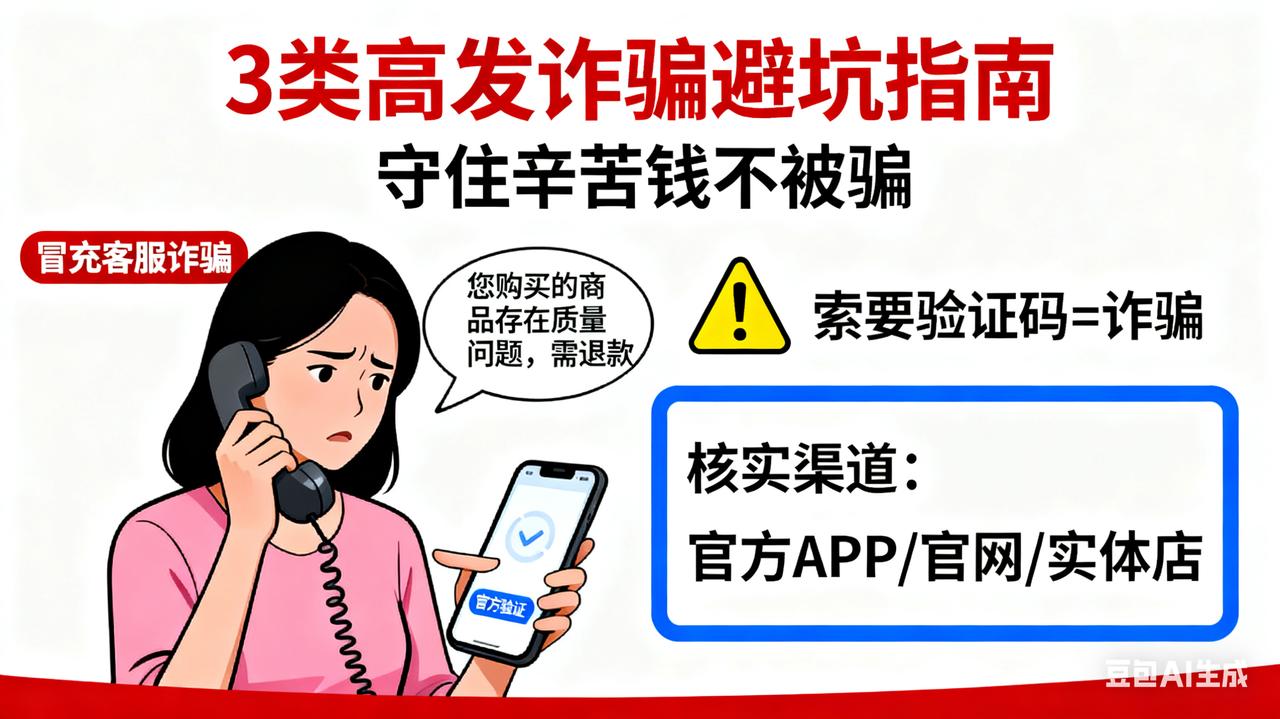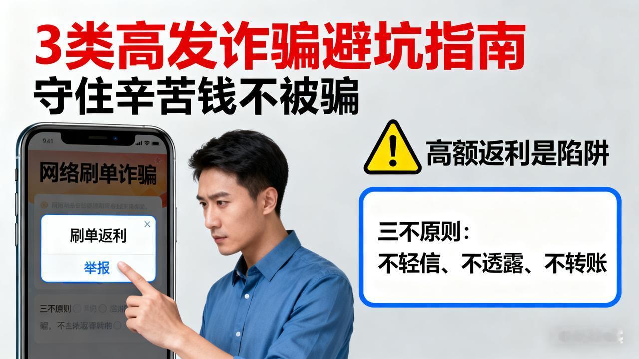 3类高发诈骗避坑指南!守住辛苦钱不被骗 1. 虚假补贴诈骗:骗子冒充平台/政府工作人员,以“购物补20%”“养老补贴申领”为诱饵,发链接让你填银行卡、验证码,一旦提交,账户余额秒空; 2. 跨省窝点刷单诈骗:伪装成“高佣金、低门槛”刷单任务,先让你小额返利,等你投入大额资金后,直接拉黑失联,涉案团伙常跨多省设窝点,追查难度大; 3. 设备远程操控诈骗:以“账户冻结”“订单异常”为由,诱导你安装远程控制APP,趁机盗取手机里的支付密码、验证码,轻松转走全部存款。 防范技巧:凡是让你“先转账”“填银行卡密码”“装陌生APP”的,一律拉黑;遇到补贴、退款类通知,直接拨打官方客服电话核实,切勿轻信陌生来电和链接!