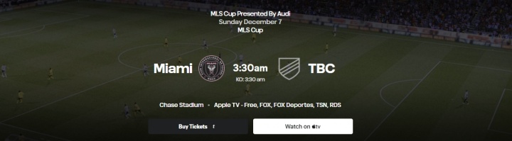总决赛将于北京时间12月7日凌晨3点在迈阿密国际主场进行。