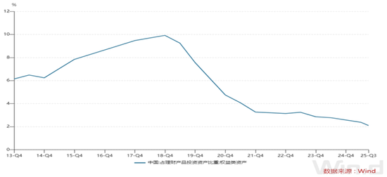 大量的国内资产集中在固收领域,集中在银行理财和存款。以银行理财为例,其含权水平在18年高点的时候是10%左右,现在最新是2%,并且虽然过去一年市场的表现还不错,这个比例没有上升,还在下降。