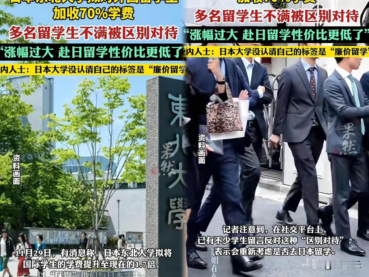 家人们! 大新闻! 大新闻!日本又双叒上涨留学生的学费了,这次上涨幅度不小,而且明显的区别对待。 日本留学生为日本经济贡献巨大,尤其是疫情期间,很多留学生甚至用自己的资金为当地捐款。 留学生的排外政策,日本自己就没有搞好,何必再推着他们走呢? 学费按国籍划分等级,实在是太不公平了。 明明是各国国民来日本学习,明明是留学生为日本贡献了巨大的经济利益,偏偏还要区别对待。 这不是典型的排外吗? 这几年赴日留学的家庭负担已经很重了,你学费就不停地上涨,岂不是要逼着大家放弃赴日留学吗? 在两国关系友好的时候,你如此对待留学生尚且不说,但在如今两国关系紧张的背景下,你涨价太多了吧? 这无疑让留学生的学业、经济和心理压力更大了 短期来看,这样的做法损害的是日本的教育形象长期来看,不利于日本教育的国际化发展,甚至可能导致大量人才流失,最终影响日本的教育和科研水平。