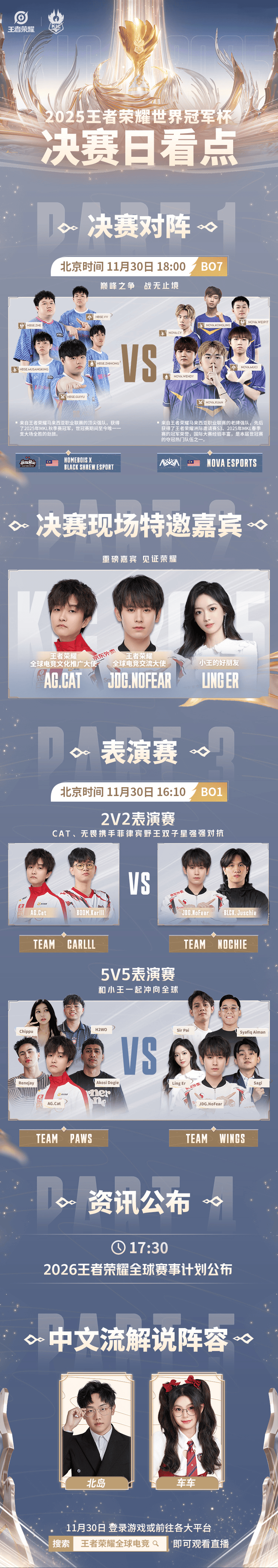 JDG无畏、陈正CatGod和灵儿现场助威,26年王者全球赛事计划公布,国际强队最终对决——一图流带你了解本届世冠决赛日看点!