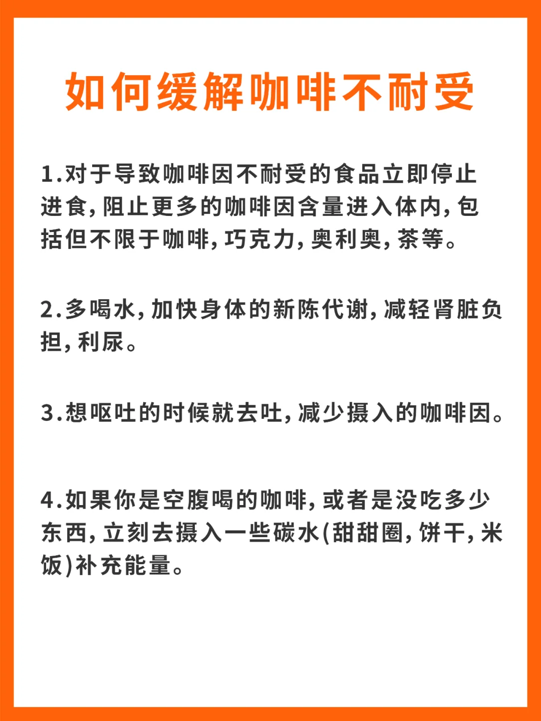 ✨对于导致咖啡因不耐受的食品立即停止进食,阻止更多的咖啡因含量进入体内,包括但不限于咖啡,巧克力,奥利奥,茶等。