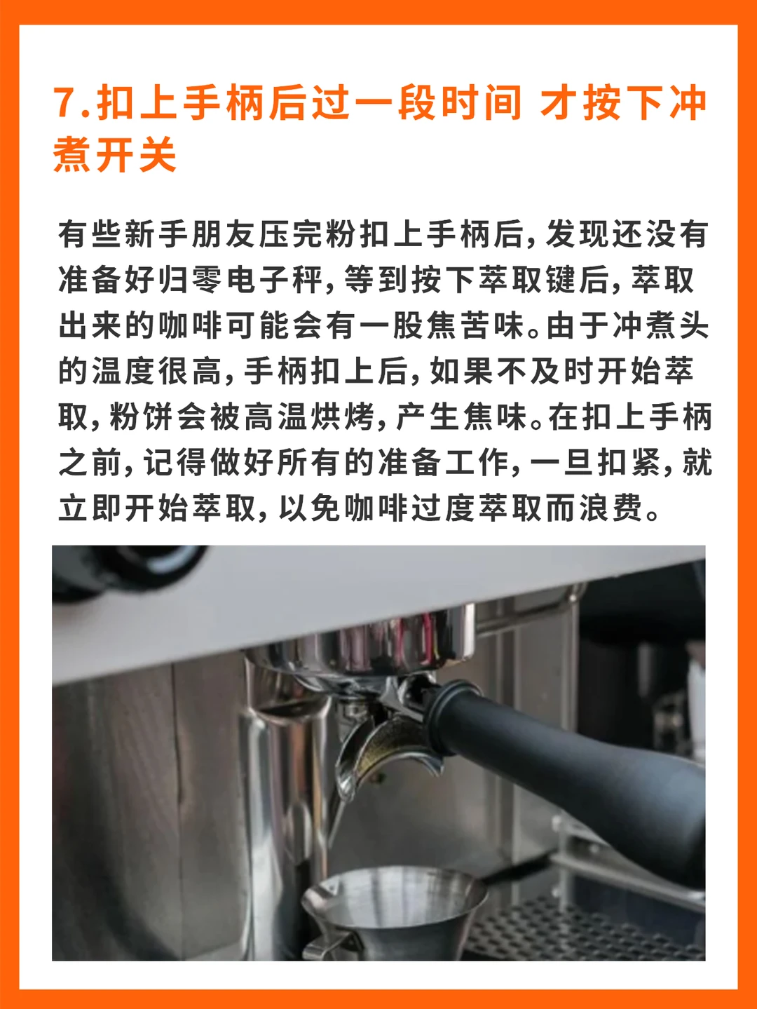 7. 扣上手柄后过一段时间才按下冲煮开关