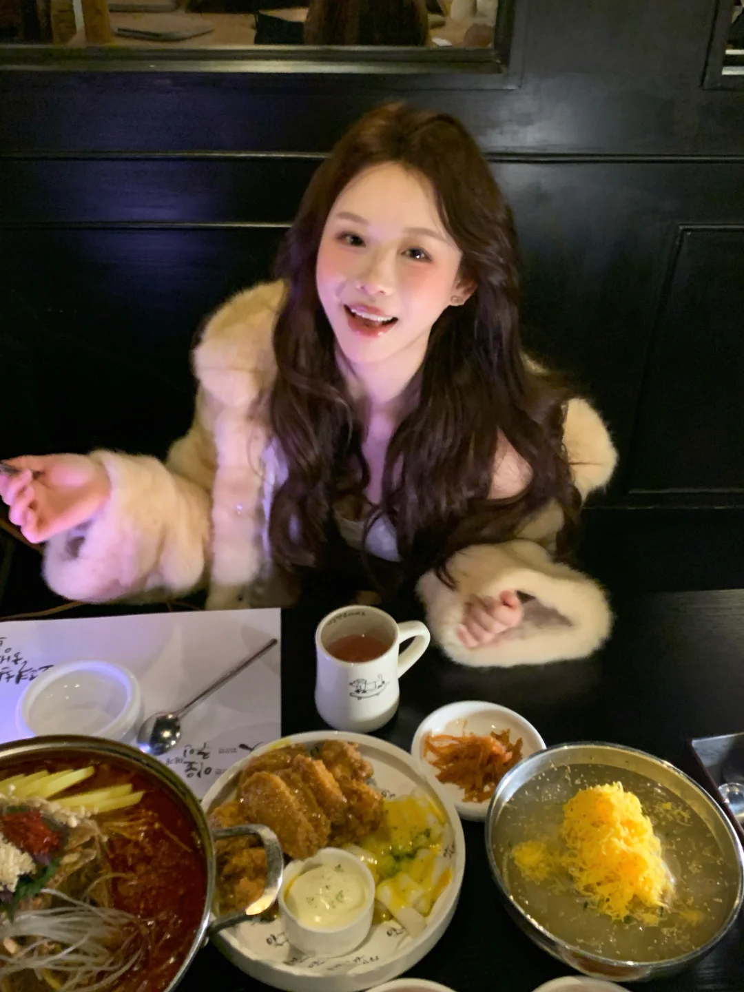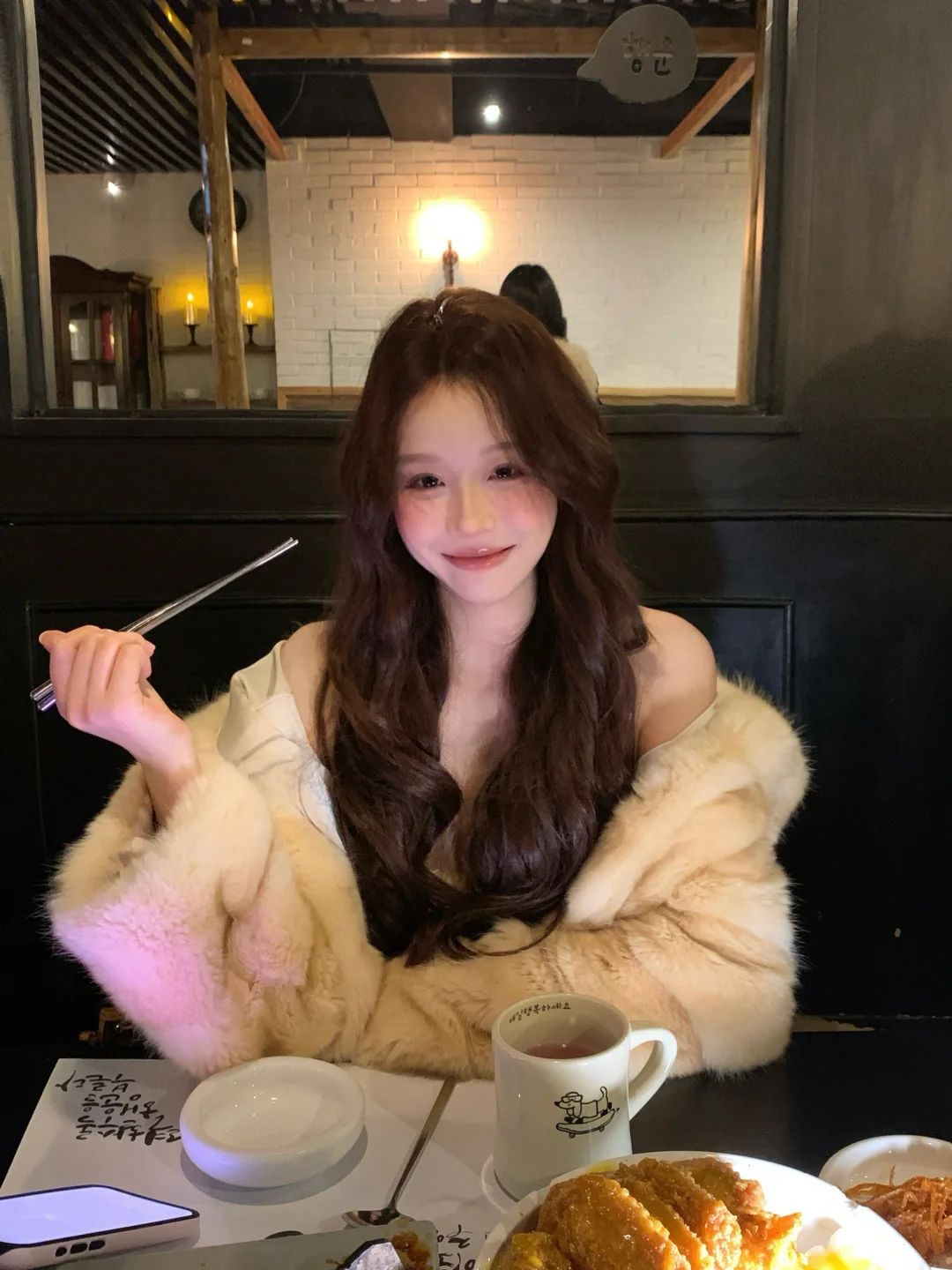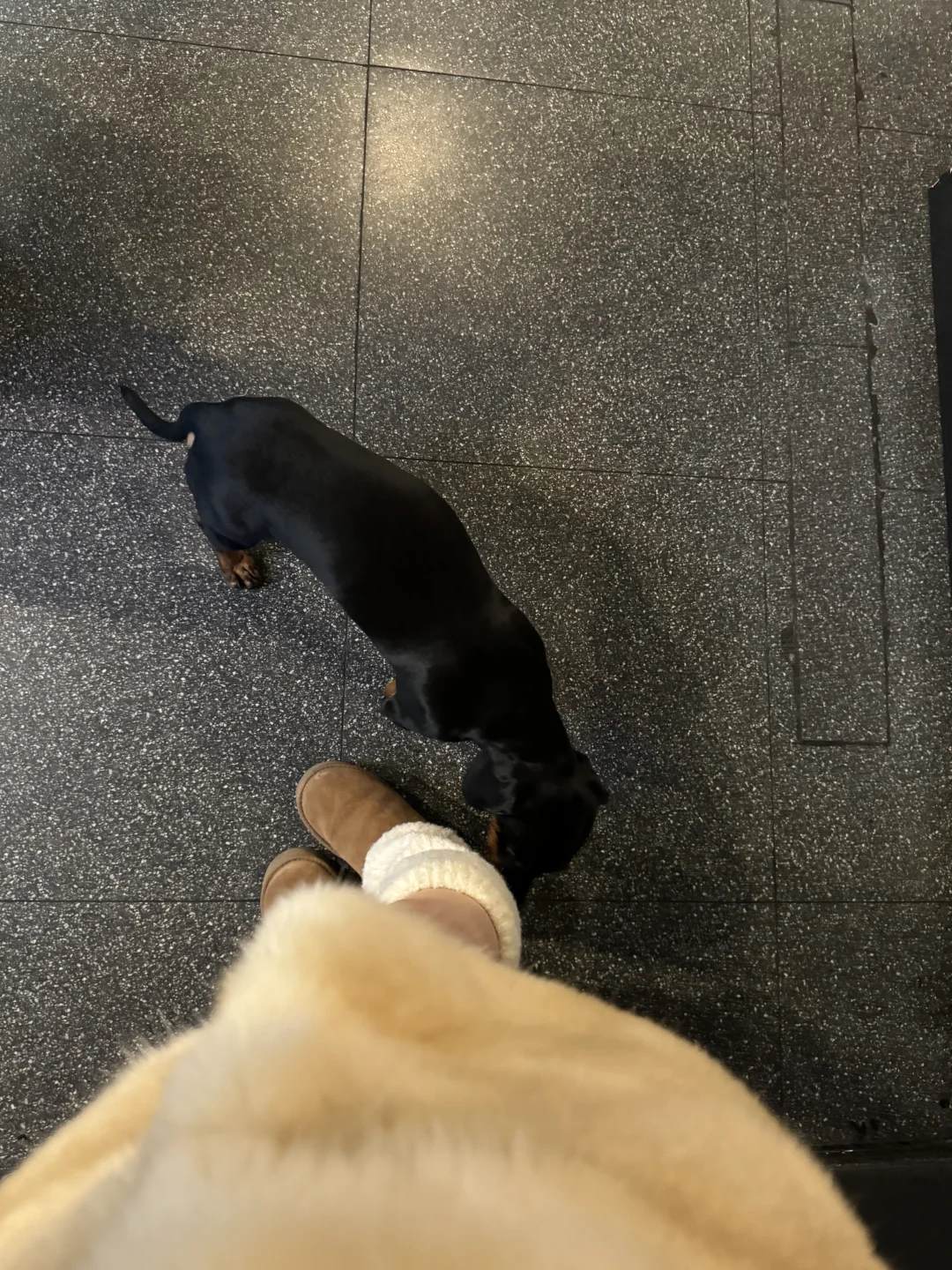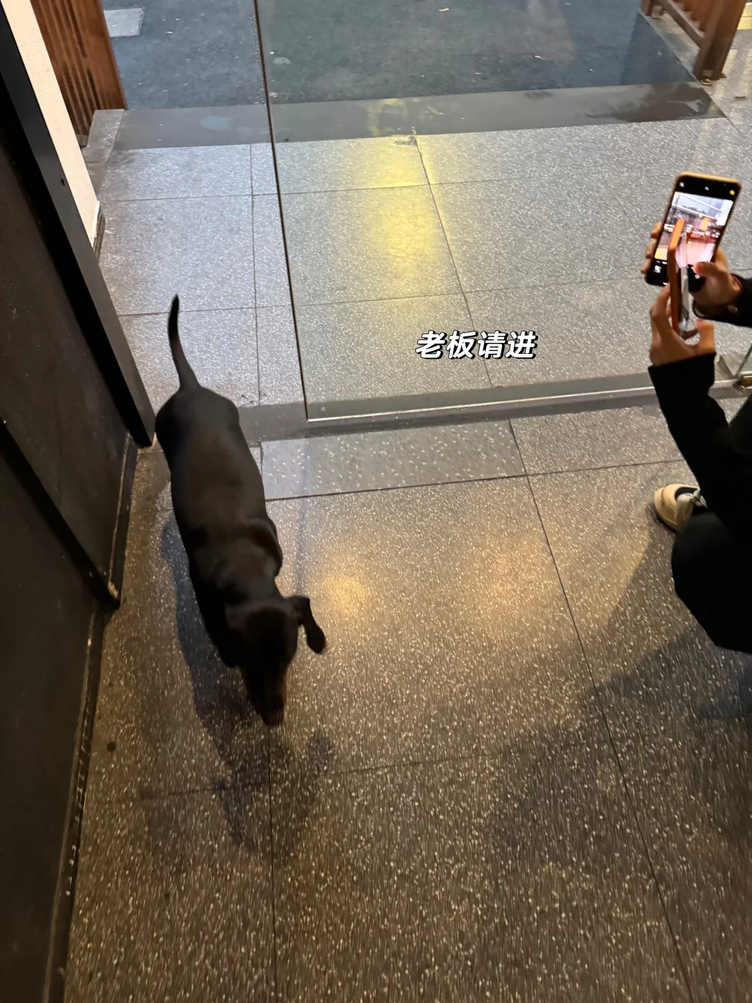 和朋友来吃韩餐 🐶店老板被关外面了 请进请进 好乖的小腊肠 直接跳到边上来啦~ 给它打个光 [暗中观察R] 真的太黑了 和座位融为一体了
