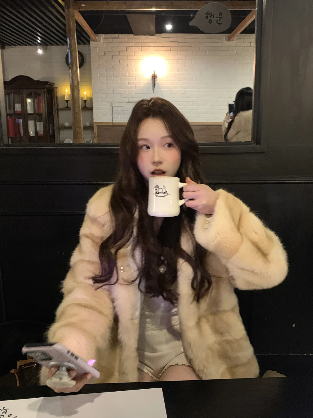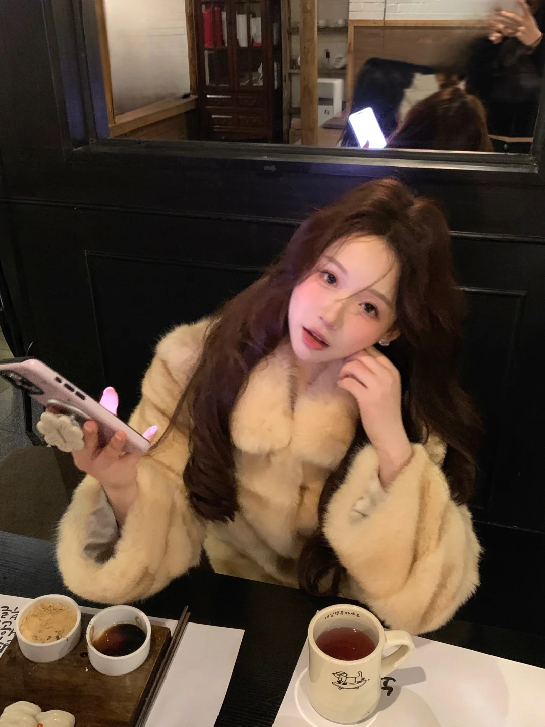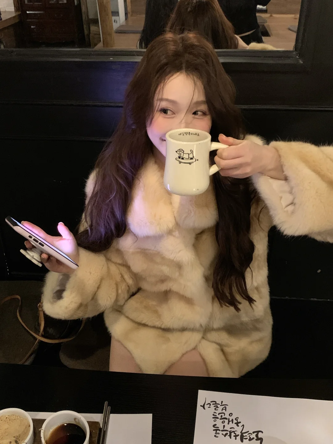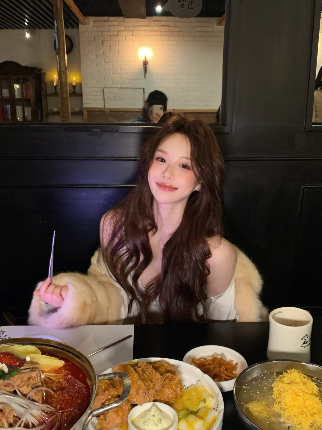 和朋友来吃韩餐 🐶店老板被关外面了 请进请进 好乖的小腊肠 直接跳到边上来啦~ 给它打个光 [暗中观察R] 真的太黑了 和座位融为一体了