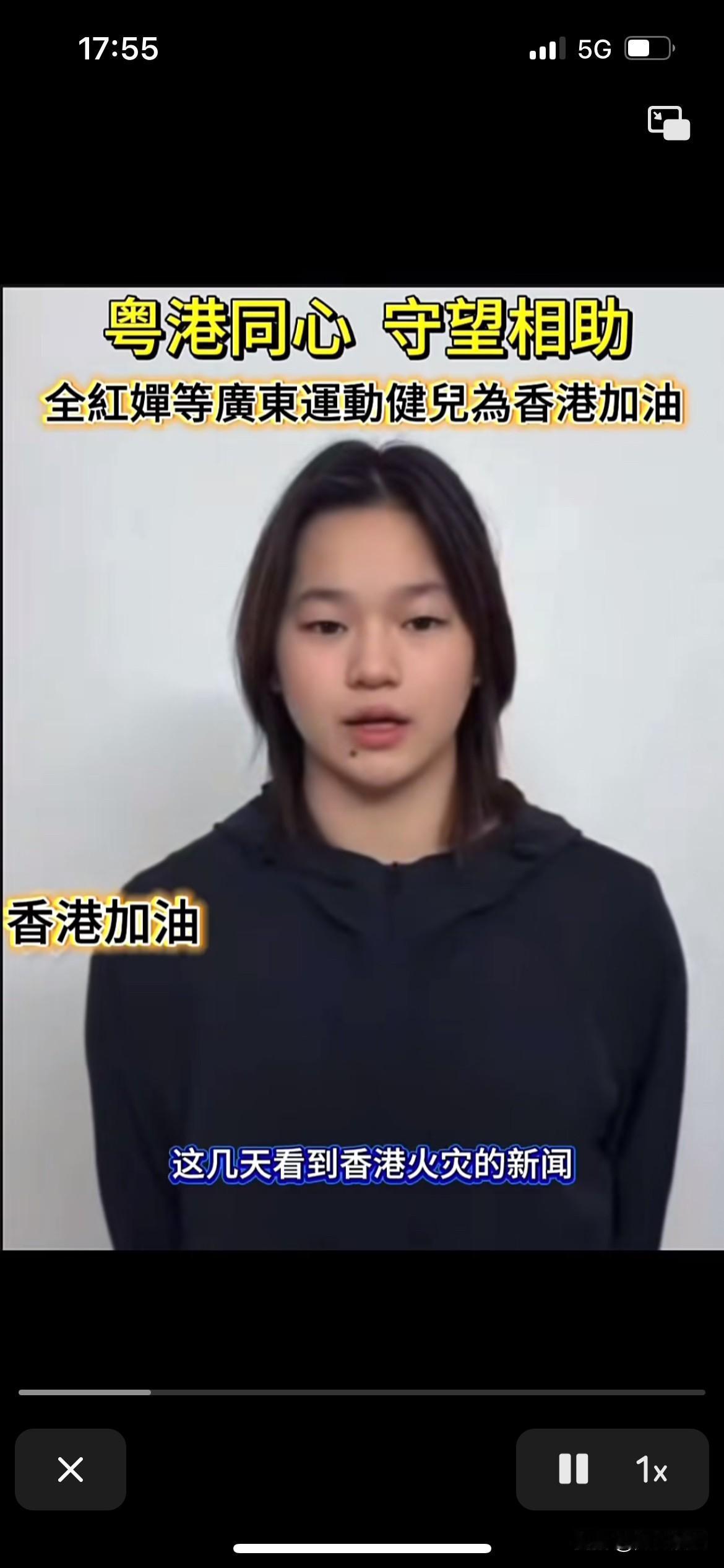 全红婵也坐不住了,看见香港发生火灾,自己赶紧出来鼓励,自己非常难过,也很牵挂,希望他们不要灰心,就像自己跳水遇到困难一样,不退缩就一定能 跨过这个坎。 全红婵最值得学习的地方是真诚、善良,这次又主动站出来力挺香港,大家不要总是拿来对比,不能让她伤心。