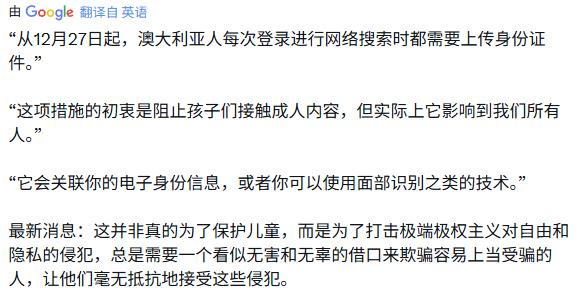 看到一则澳大利亚关于网络实名制的新闻,分享给大家:澳大利亚从2025年12月27日起,只要在网络上搜索,就必须上传身份证件。据说此举是为了避免未成年人上网,但实际上是为了减少网络欺诈行为。我不是特别理解搜索上传身份证件与减少网络欺诈之间有啥关联,不知道此举能够起什么作用,我个人觉得可能确实能够减少未成年人上网的时间,但作用不大。
