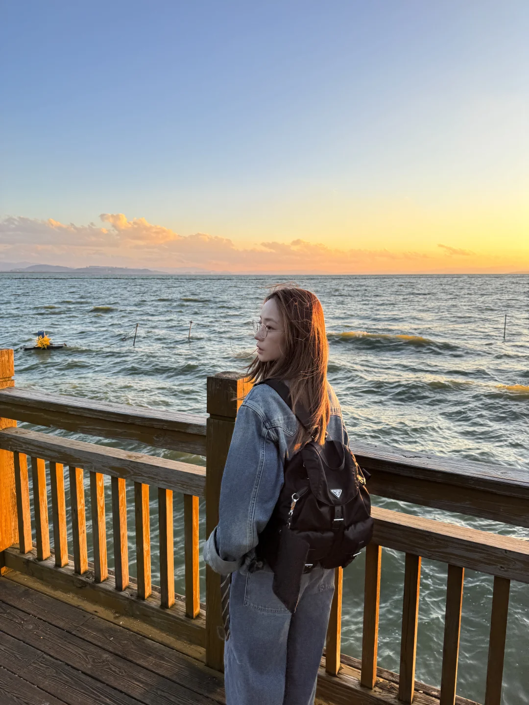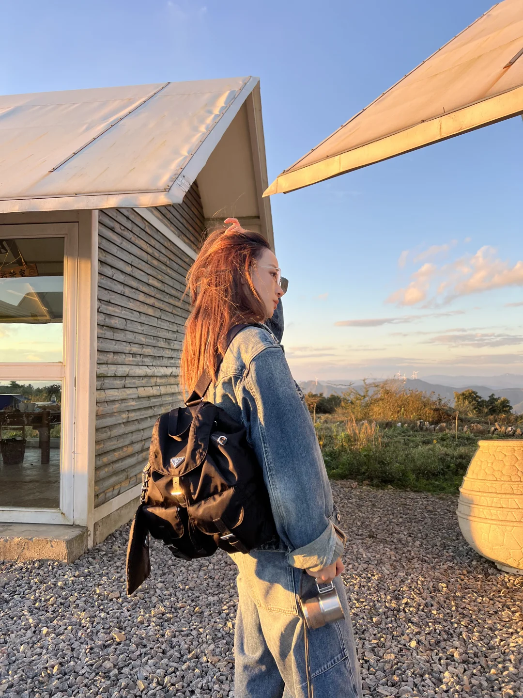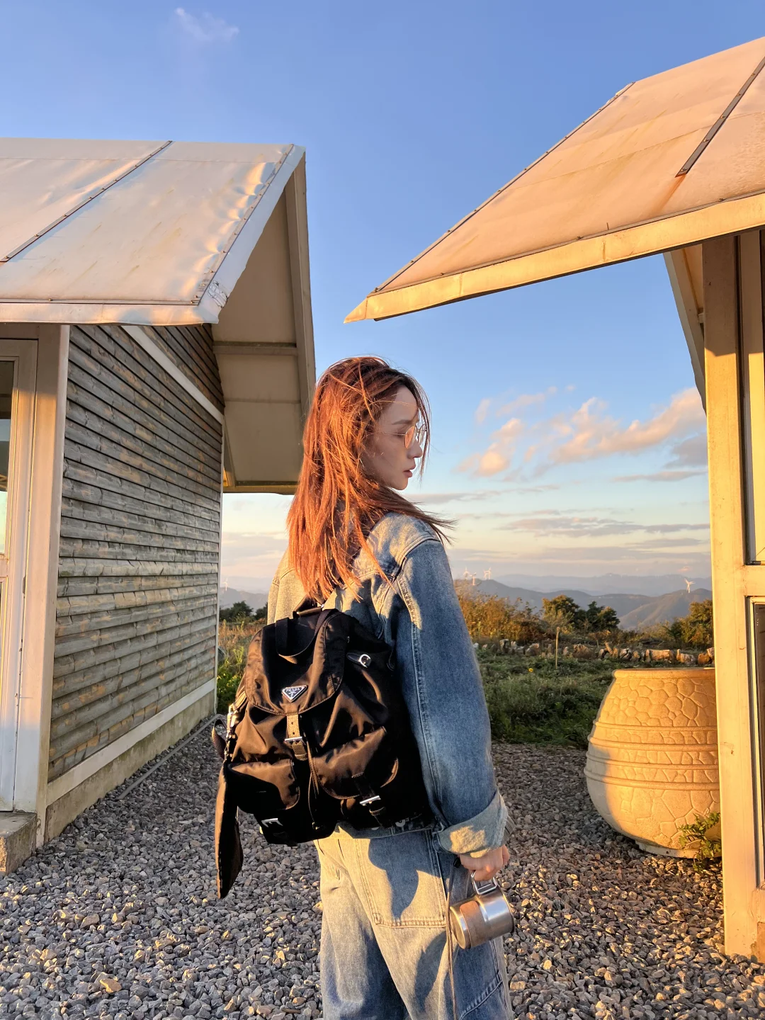 昆明最近的天气太适合Citywalk啦☀️ 海鸥也如约而至 一切都刚刚好 背上我的再生尼龙双肩包 漫步在滇池边上 感受微风轻拂过大地🍃 黄金时刻来到龙山看日落 百搭的Prada Re-Nylon双肩包搭配一身牛仔 简简单单的 是我舒服的状态啦🚶🏻♀️➡️ 我这种长期主义者完全被硬控住~