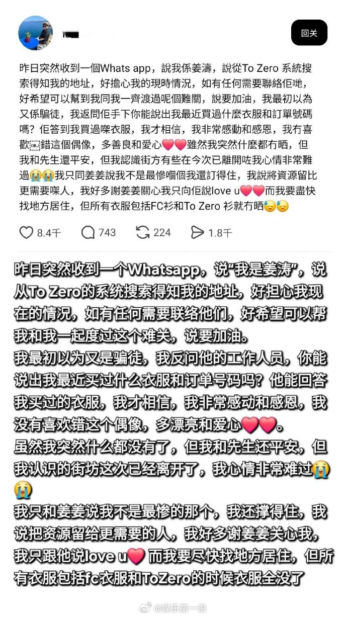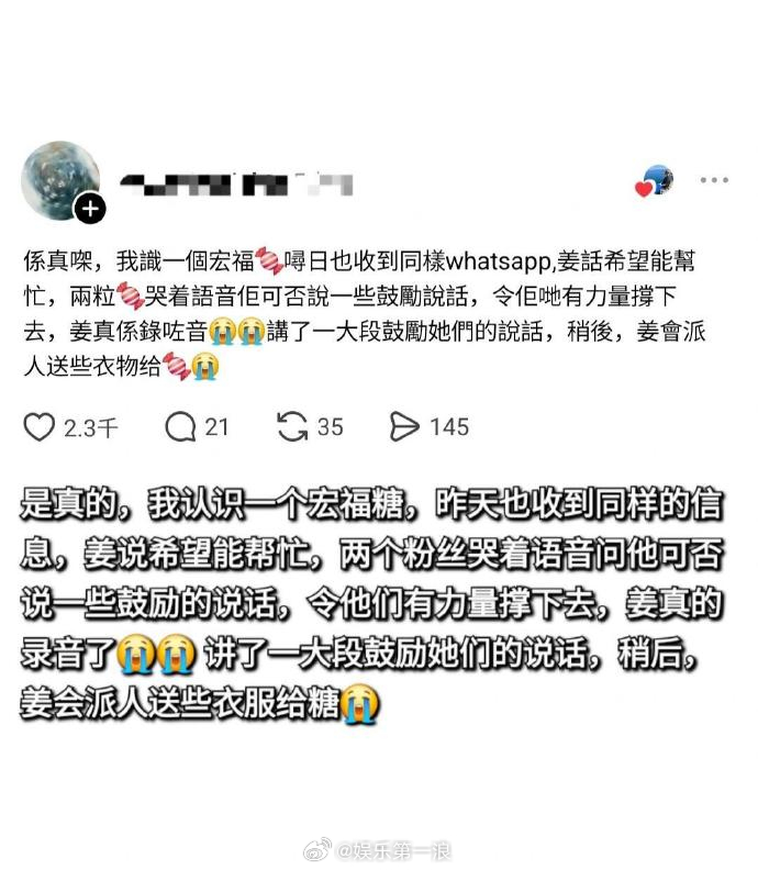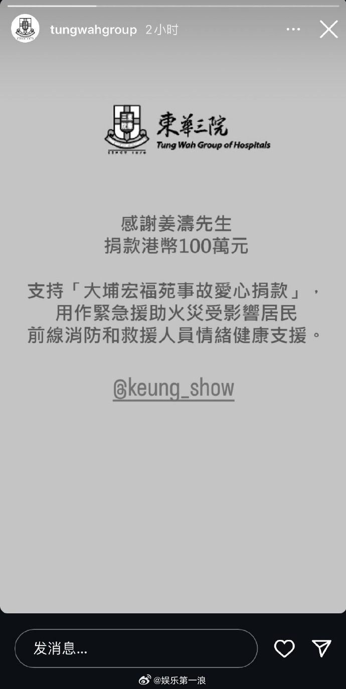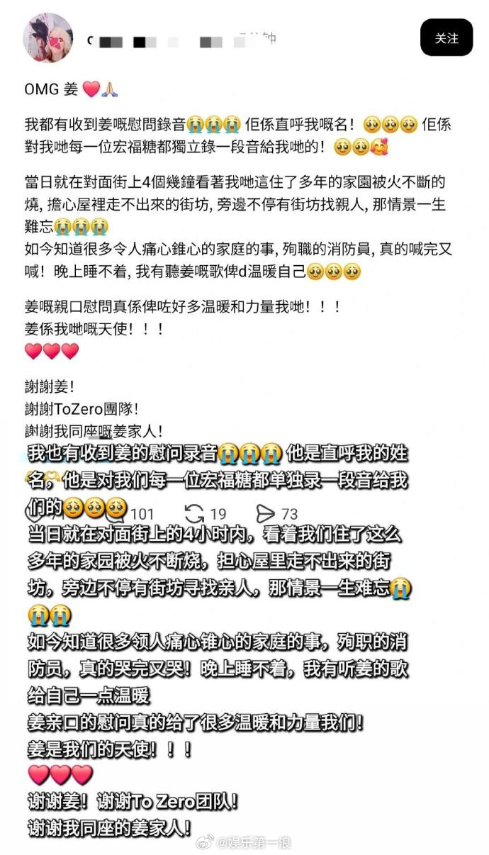 姜涛 一个吃商这么高的人能差到哪里去 姜涛主动私信火灾区域的粉丝给予帮助,还捐了100万港币