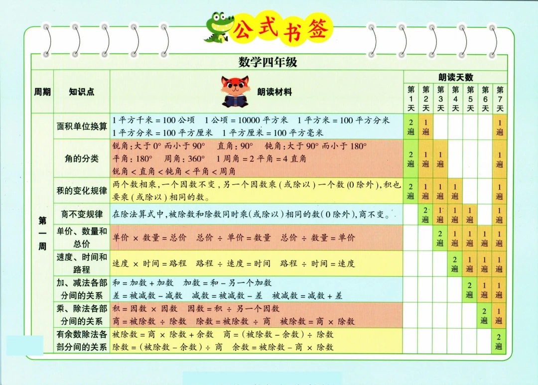 四年级数学 小学数学公式 学习