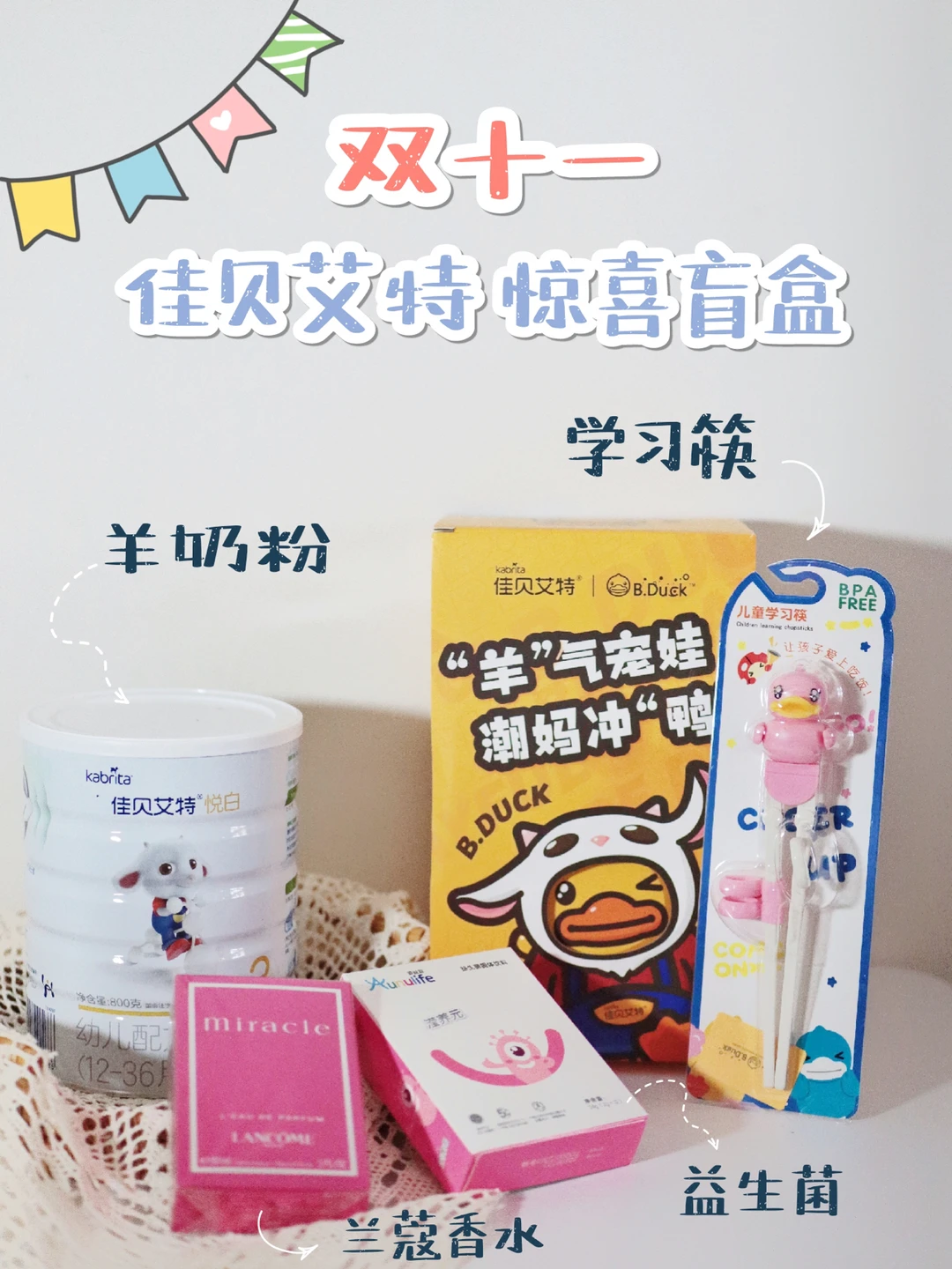 一瓶兰蔻香水,一份小黄鸭学习筷,还有一整盒爱益森的益生菌,跟收到🎁一样开心😁不仅囤了宝宝的口粮,还收到了送给麻麻的礼物,太有心了,我的佳贝艾特~