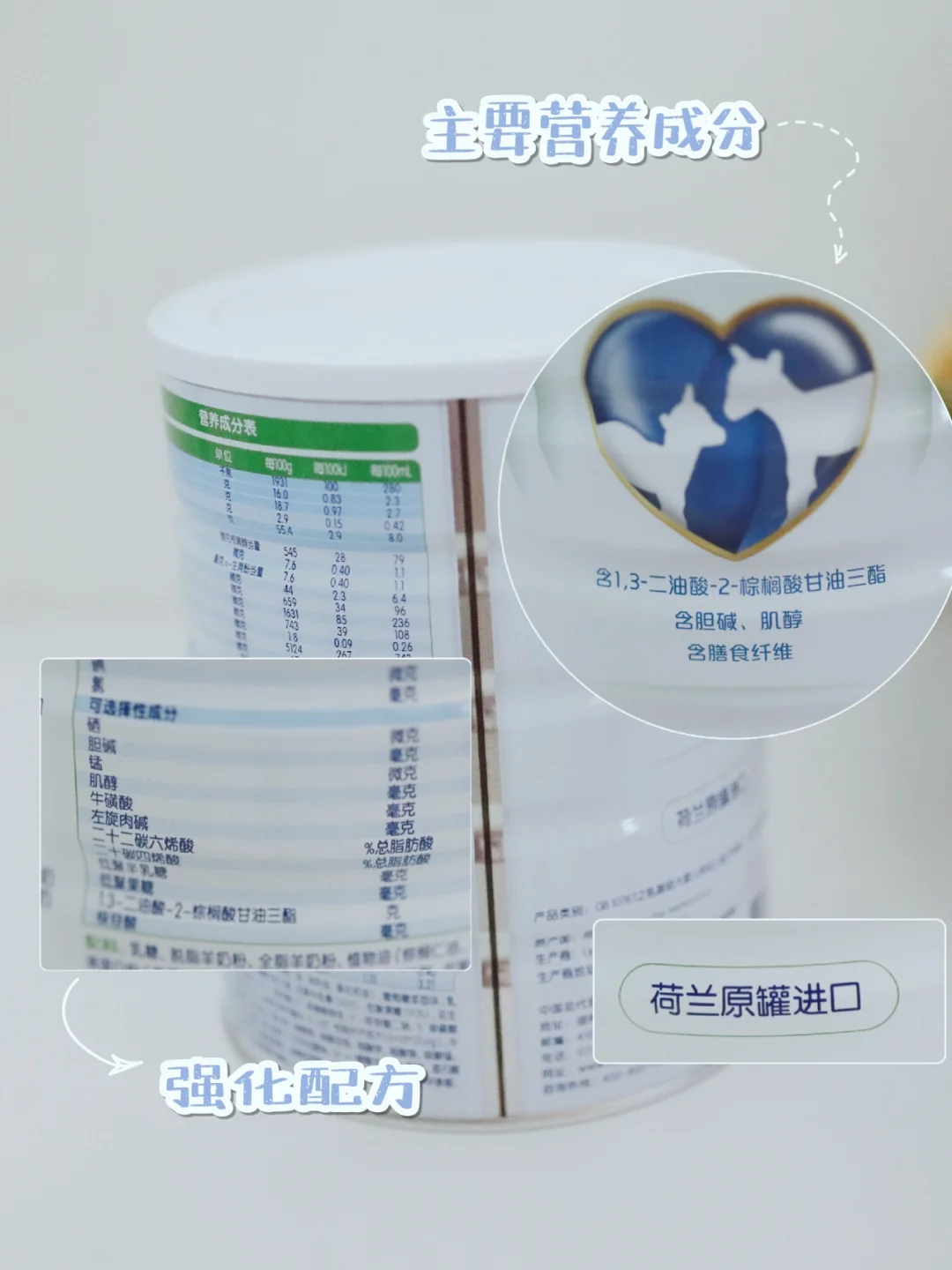 三来这羊奶粉是用的百分百羊乳蛋白,好消化又好吸收,还有DHA等益智成分来助攻,养出健康聪明宝宝。
