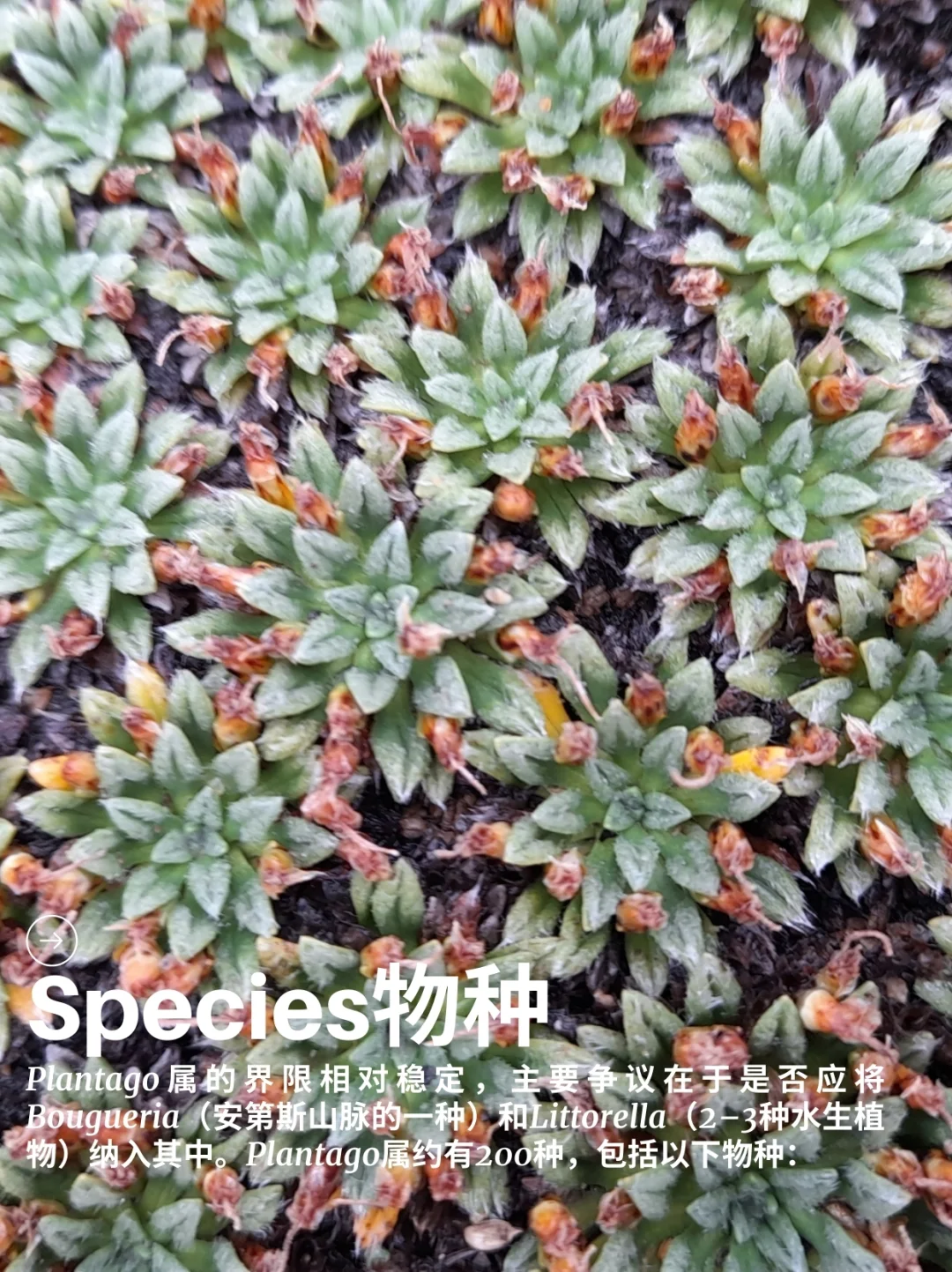 山野草 药草 野菜 车前科 车前属 Plantago 盆栽 花园植物 车前草是车前科Plantaginaceae车前属Plantago,开花植物中的一个属,约有 200 个品种。车前草的俗名与不相关的烹饪用车前草相同。大部分是草本植物,但也有少数是亚灌木,可长到 60 厘米高。