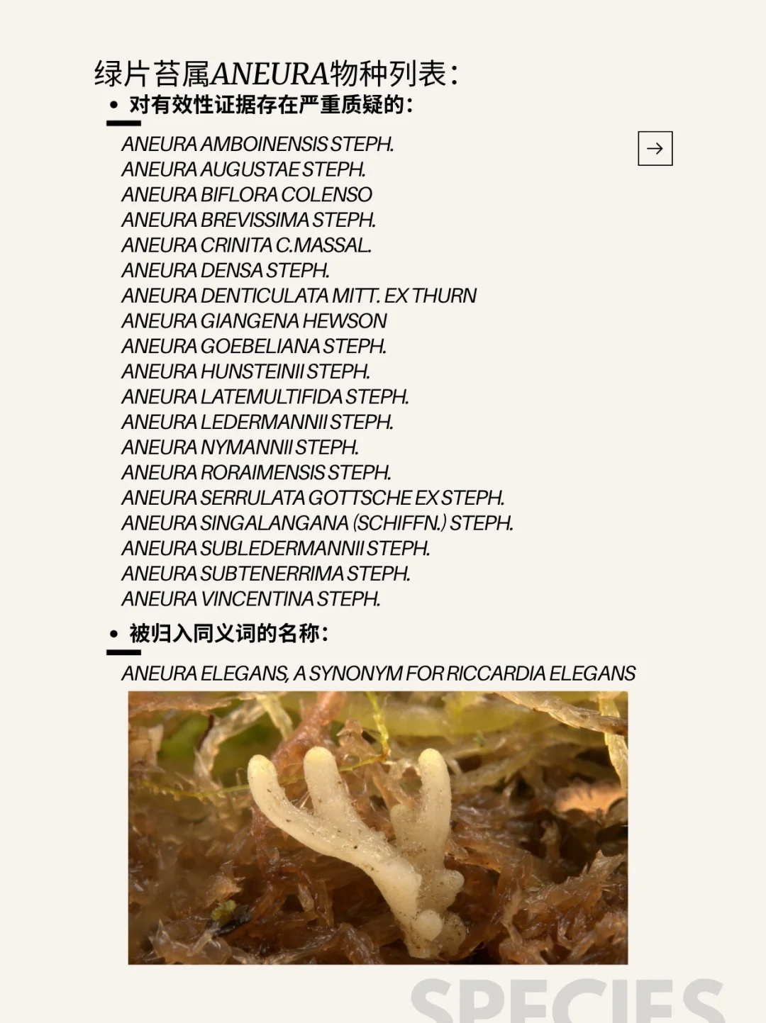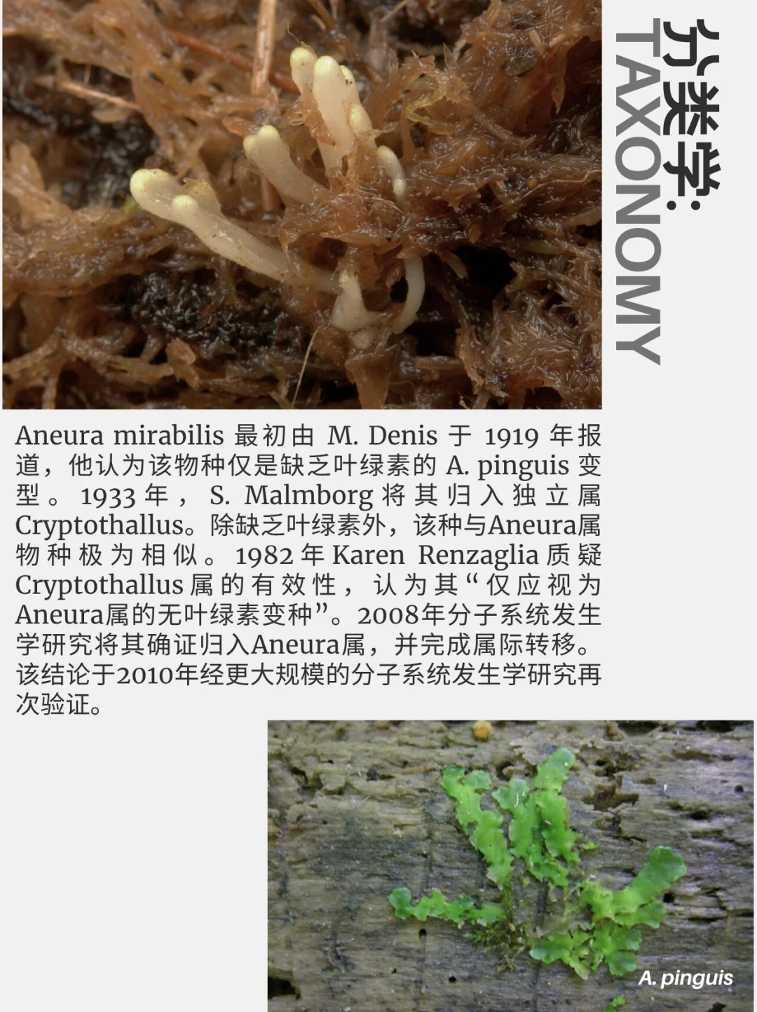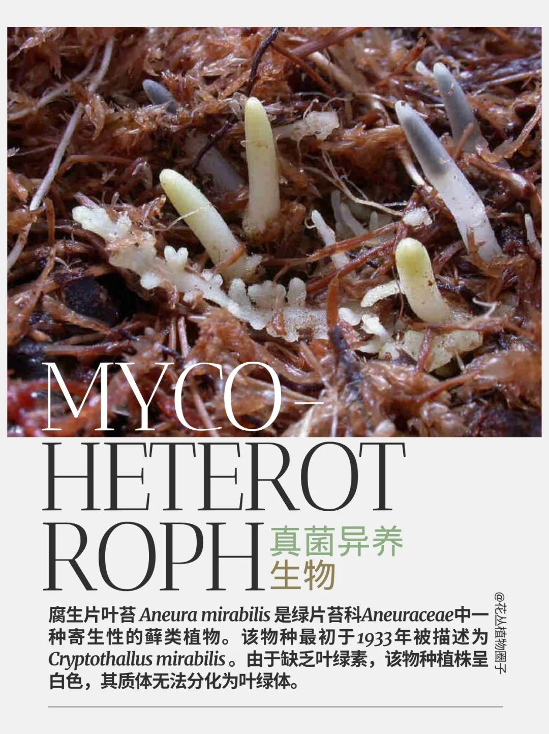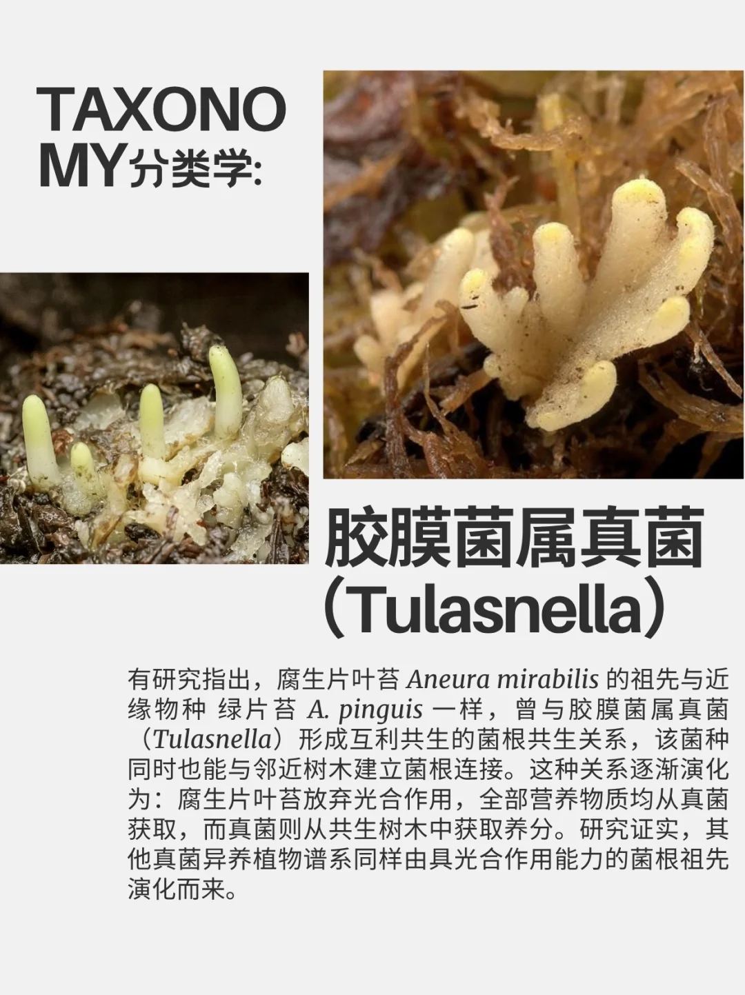 腐生片叶苔 Aneura mirabilis 绿片苔科 山野草 苔藓 真菌异养 缺乏叶绿素 质体 雌雄异株 泥炭藓 桦树 腐生片叶苔Aneura mirabilis