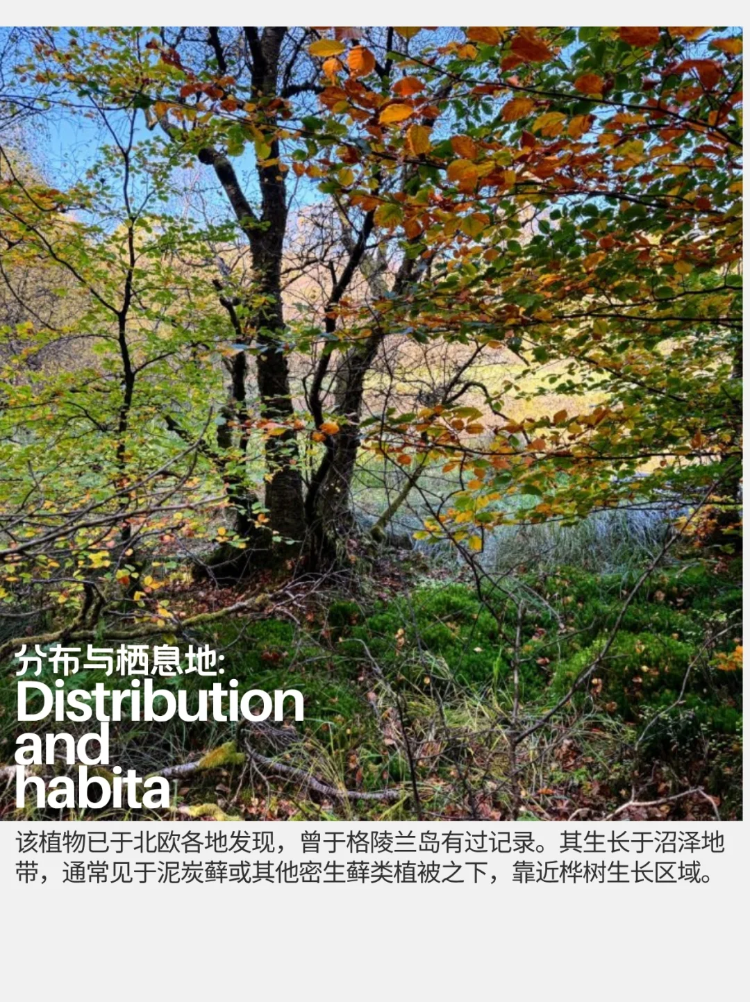 该植物已于北欧各地发现,曾于格陵兰岛有过记录。其生长于沼泽地带,通常见于泥炭藓或其他密生藓类植被之下,靠近桦树生长区域。