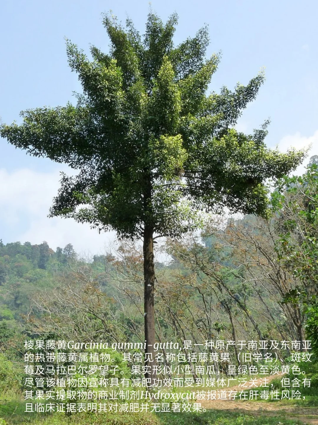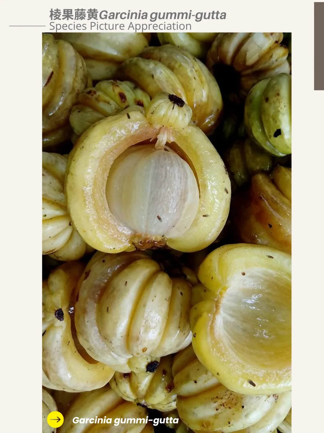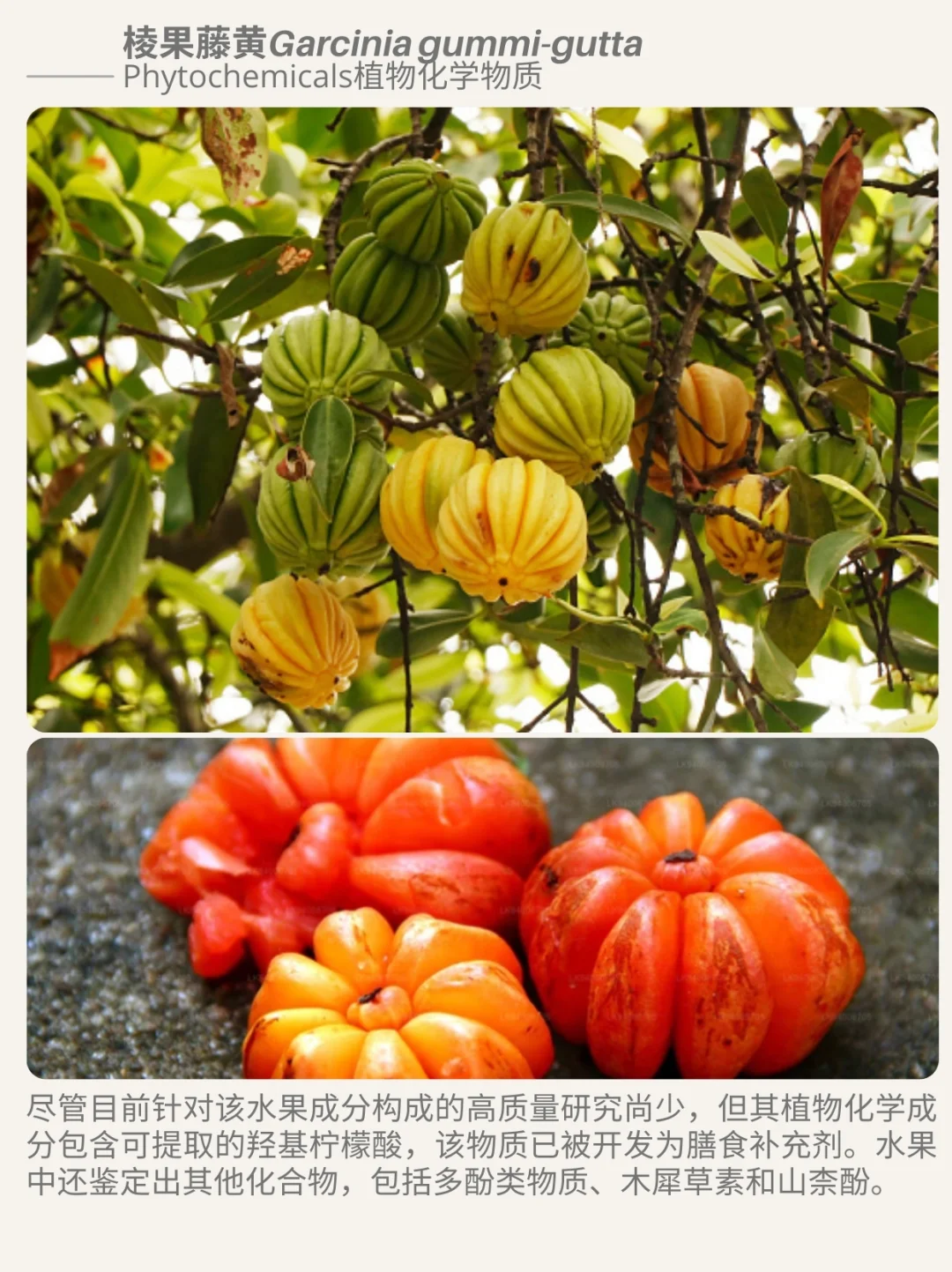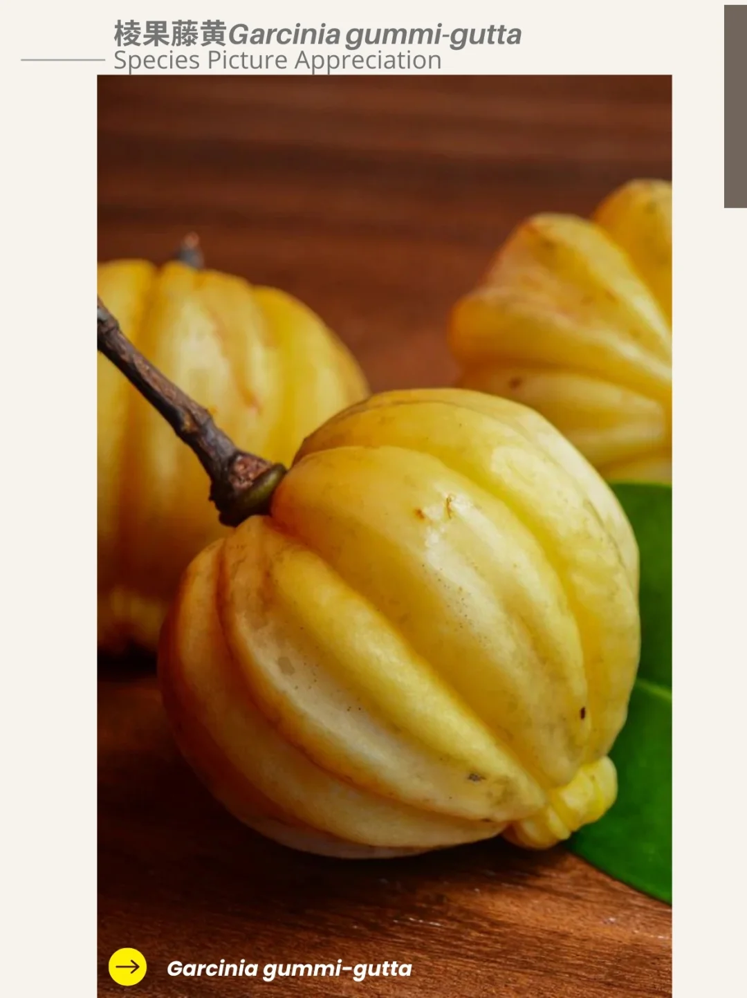 棱果藤黄 竹子科 藤黄属 藤黄 东南亚 热带植物 酸咖喱 可食用植物 植物 闯入我生活的新奇植物 棱果藤黄Garcinia gummi-gutta,是一种原产于南亚及东南亚的热带山竹子科Clusiaceae藤黄属植物。其常见名称包括藤黄果(旧学名)、斑纹莓及马拉巴尔罗望子。果实形似小型南瓜,呈绿色至淡黄色。尽管该植物因宣称具有减肥功效而受到媒体广泛关注,但含有其果实提取物的商业制剂Hydroxycut被报道存在肝毒性风险,且临床证据表明其对减肥并无显著效果。