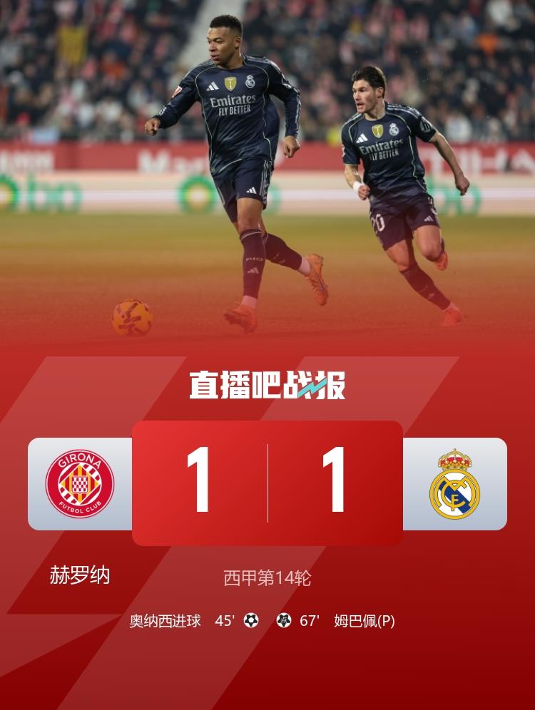 直播吧12月01日讯西甲第14轮皇马客场1-1战平赫罗纳,皇马遭遇联赛3连平,各项赛事近5场仅1胜!