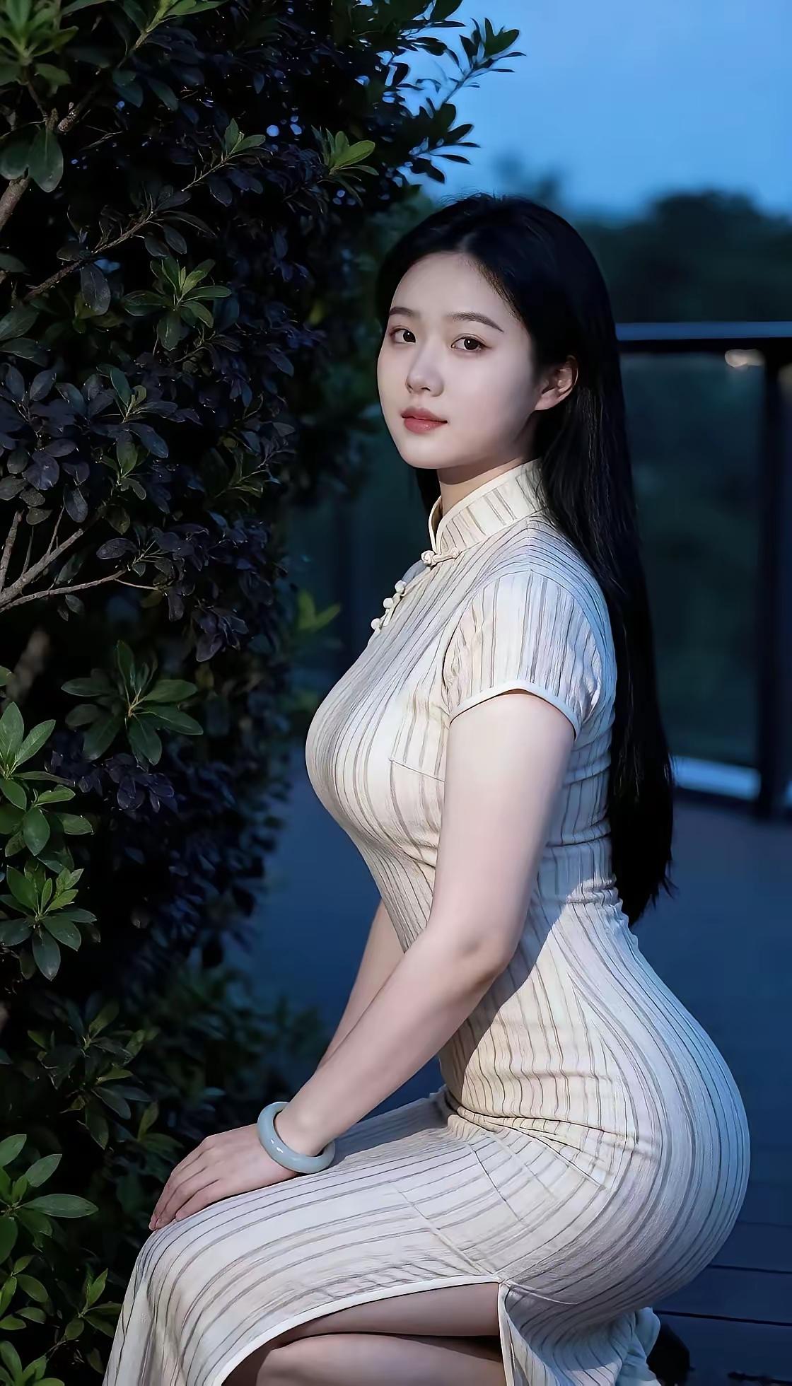素雅的片色和印花布料缝制的旗袍。虽然在款式、穿着、搭配方面比较正统,但其风姿卓约