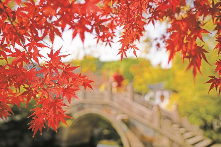 昨天,在嘉兴南湖景区勺园,经历寒霜洗礼,一树树红叶缀满枝头,恰应了古诗“霜叶红于二月花”。